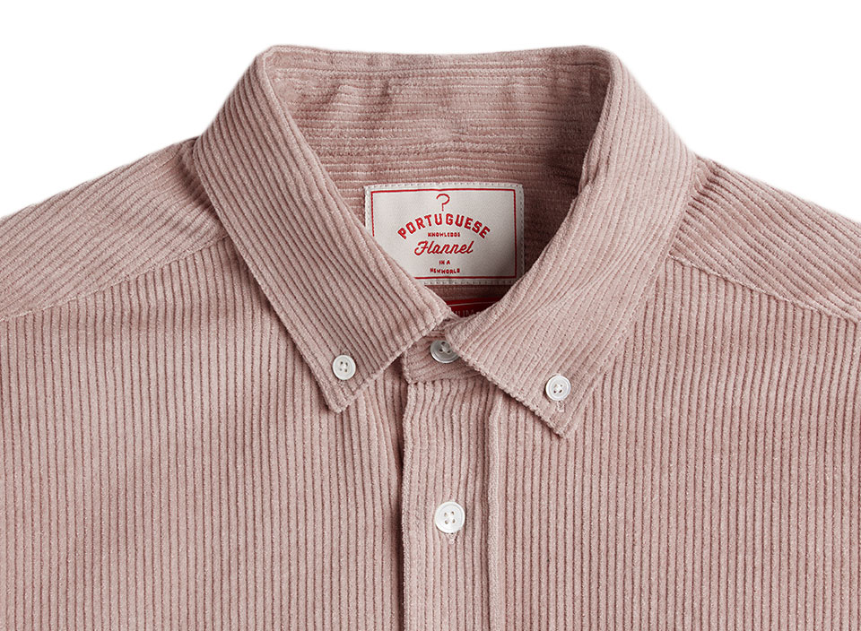 PORTUGUESE FLANNEL Lobo 2.0 Shirt Old Rose. Regular fit shirt made from cotton corduroy fabric. Chest pocket. Buttoned collar and cuffs. Rounded Hem.