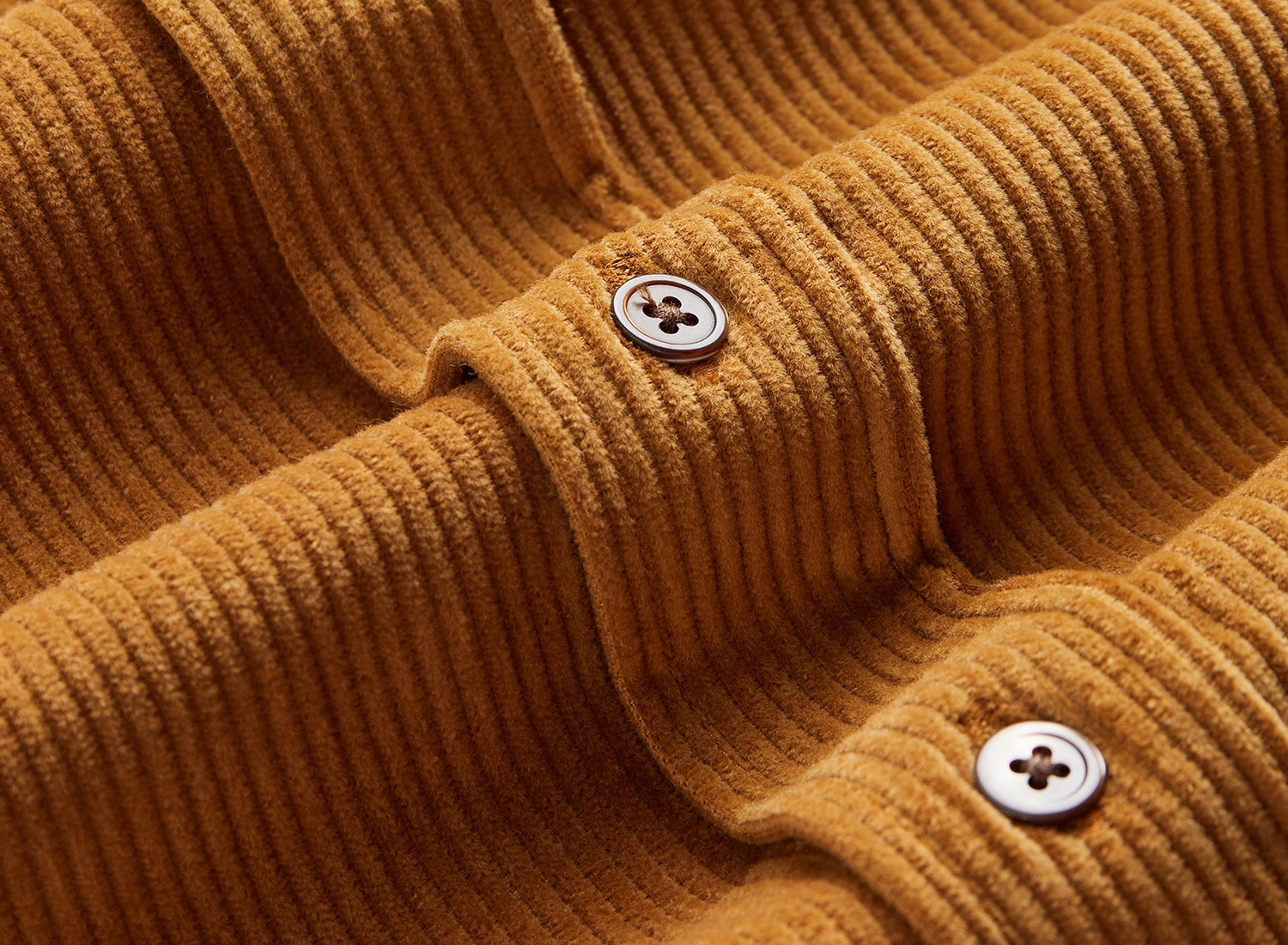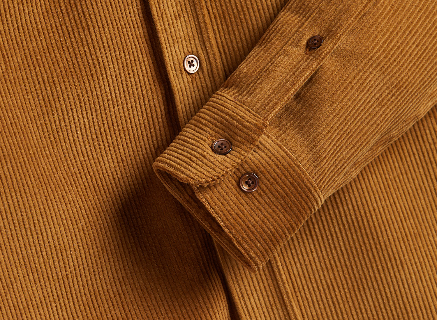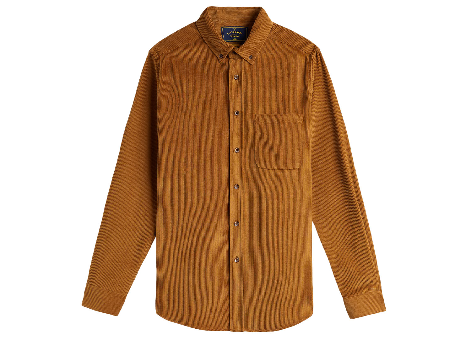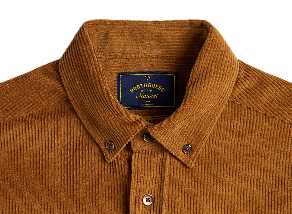PORTUGUESE FLANNEL Lobo 2.0 Shirt Prairie. Regular fit shirt made from cotton corduroy fabric. Chest pocket. Buttoned collar and cuffs. Rounded Hem.
