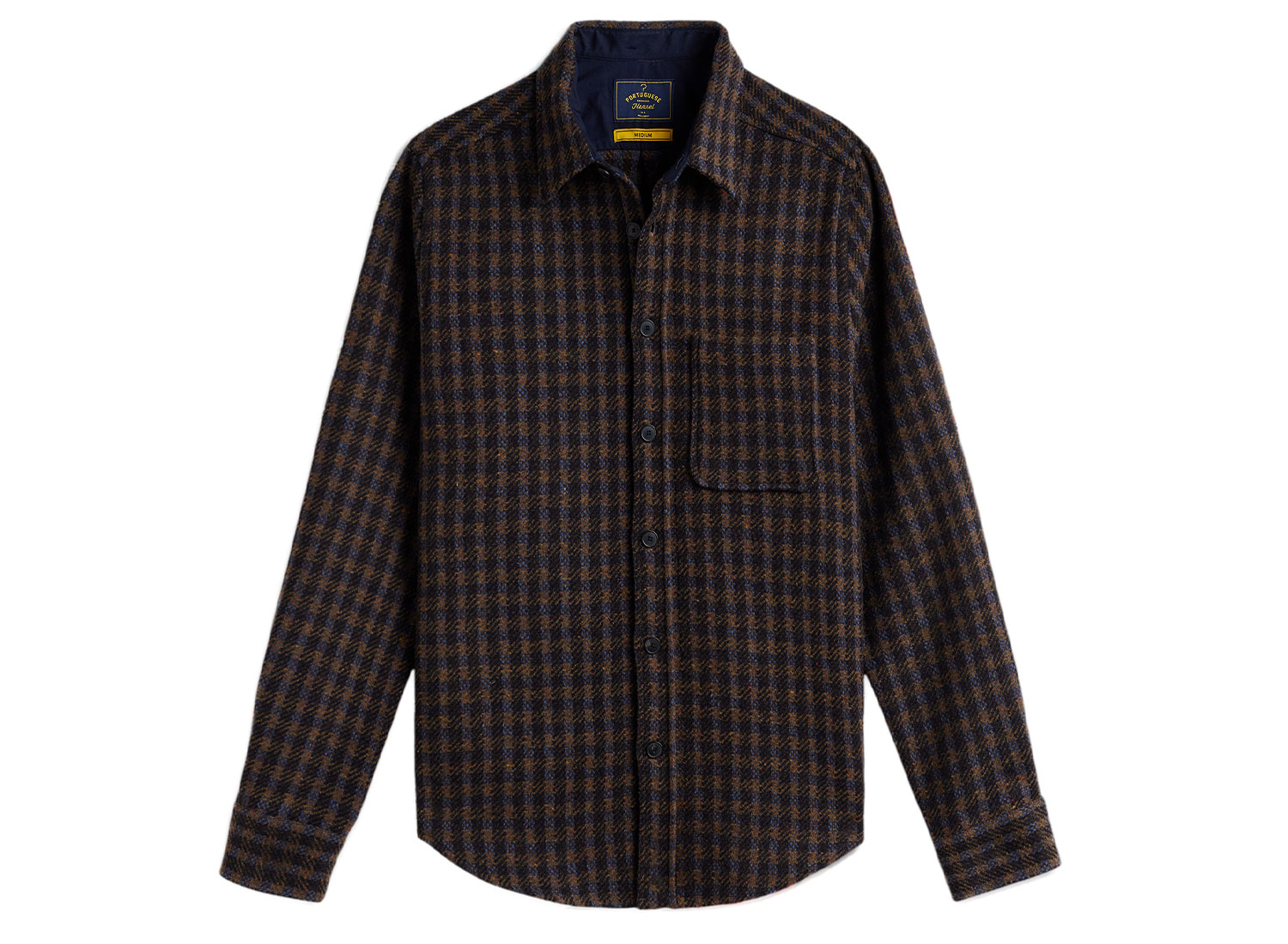 Regular fit checked overshirt made from heavy merino wool flannel.