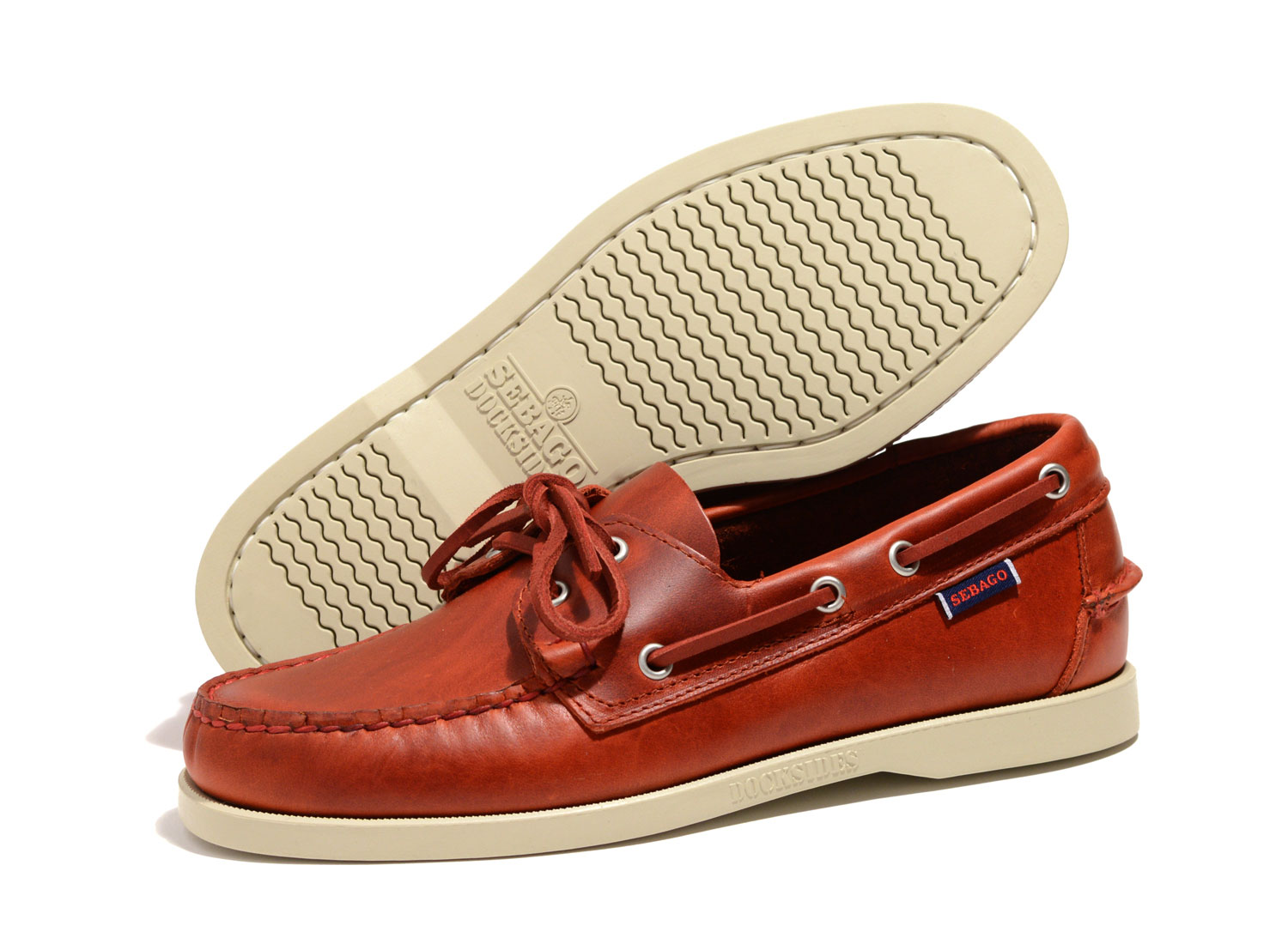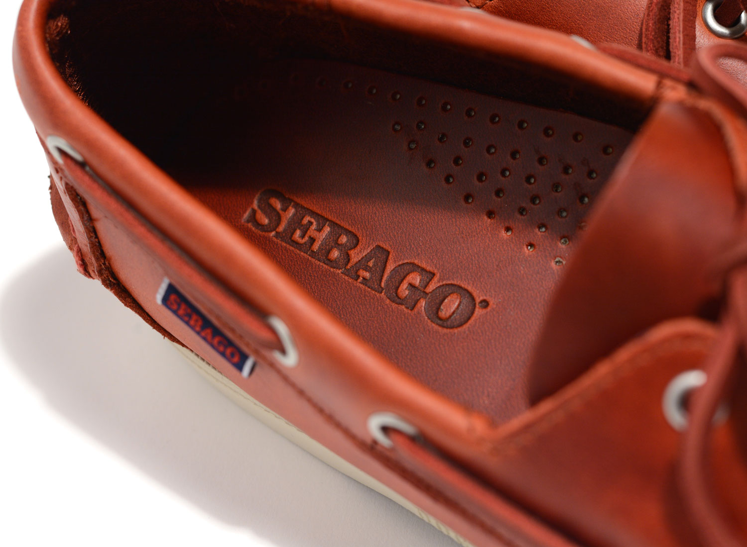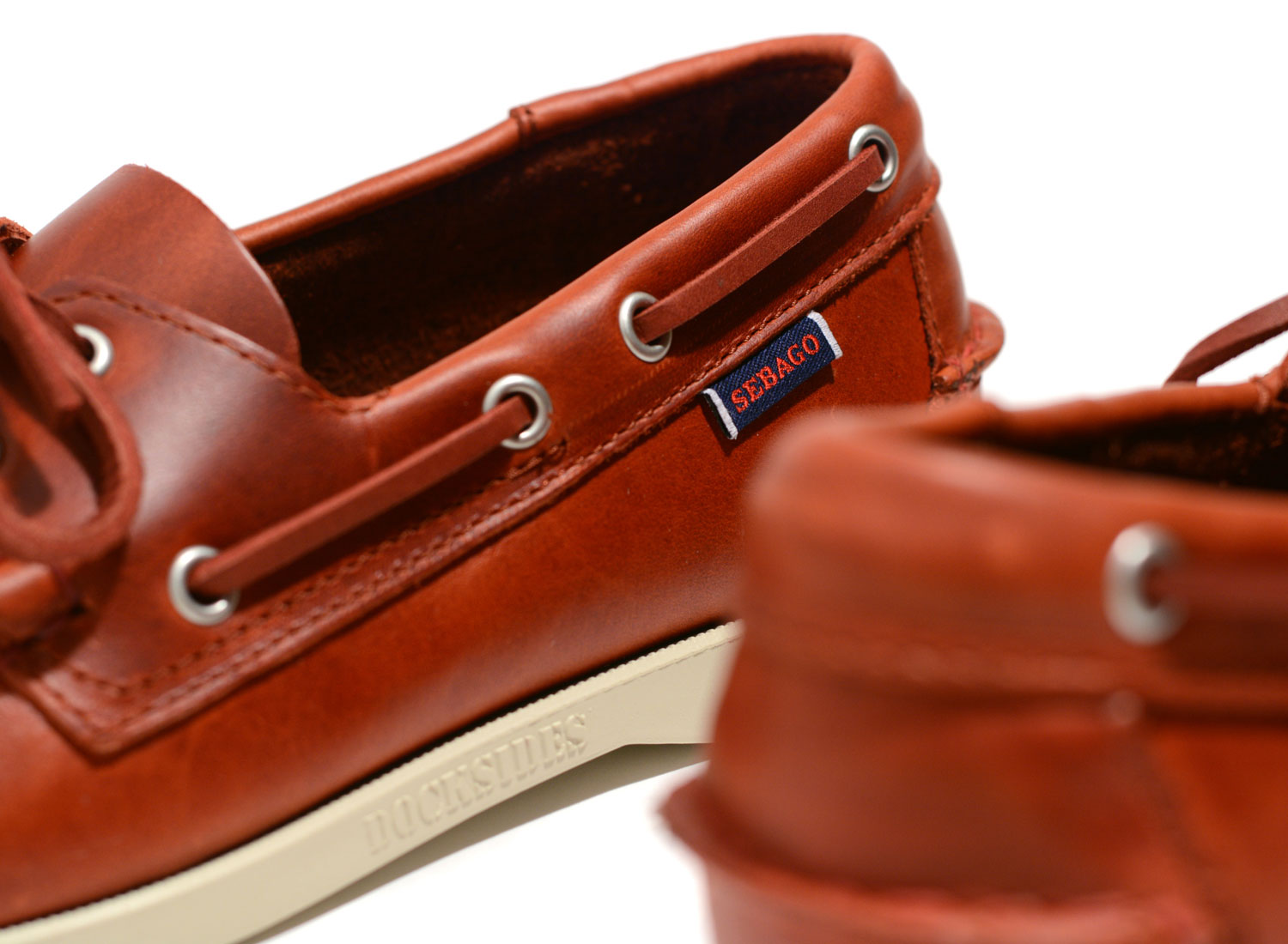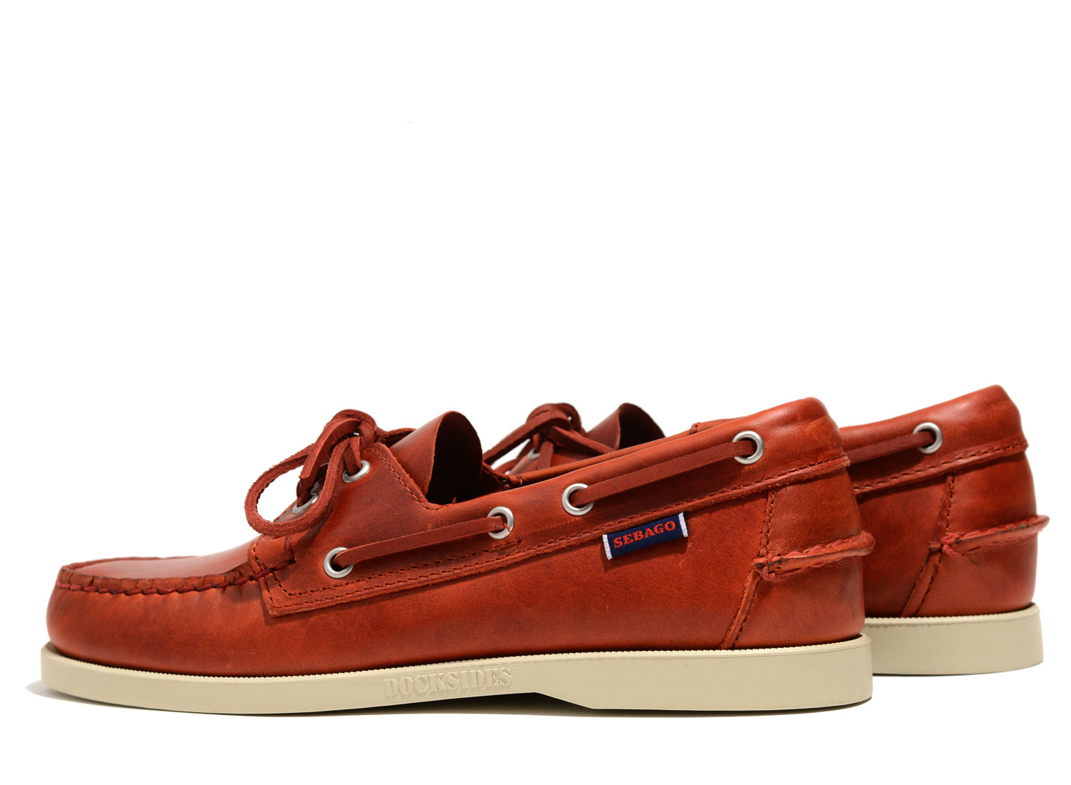 SEBAGO Docksides Portland Dark Red. The originals boat shoes from SEBAGO. Unlined upper made from leather. Leather insole. Raw laces all around the shoes. Rubber outsole.