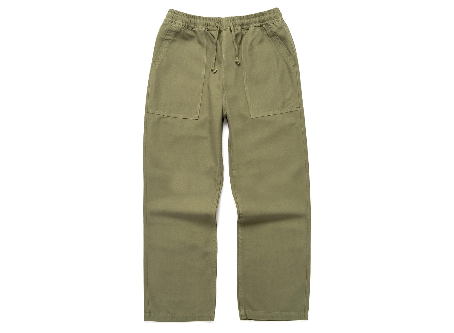 Pants crafted from 360g/m² (11oz) GOTS-certified organic cotton canvas for durability and toughness. Relaxed fit with straight leg for a relaxed workwear silhouette. Elasticated waistband with drawcord for an adjustable fit. Front fatigue pockets and back pockets with woven Service Works label. A living canvas that develops a natural patina over time and with use.