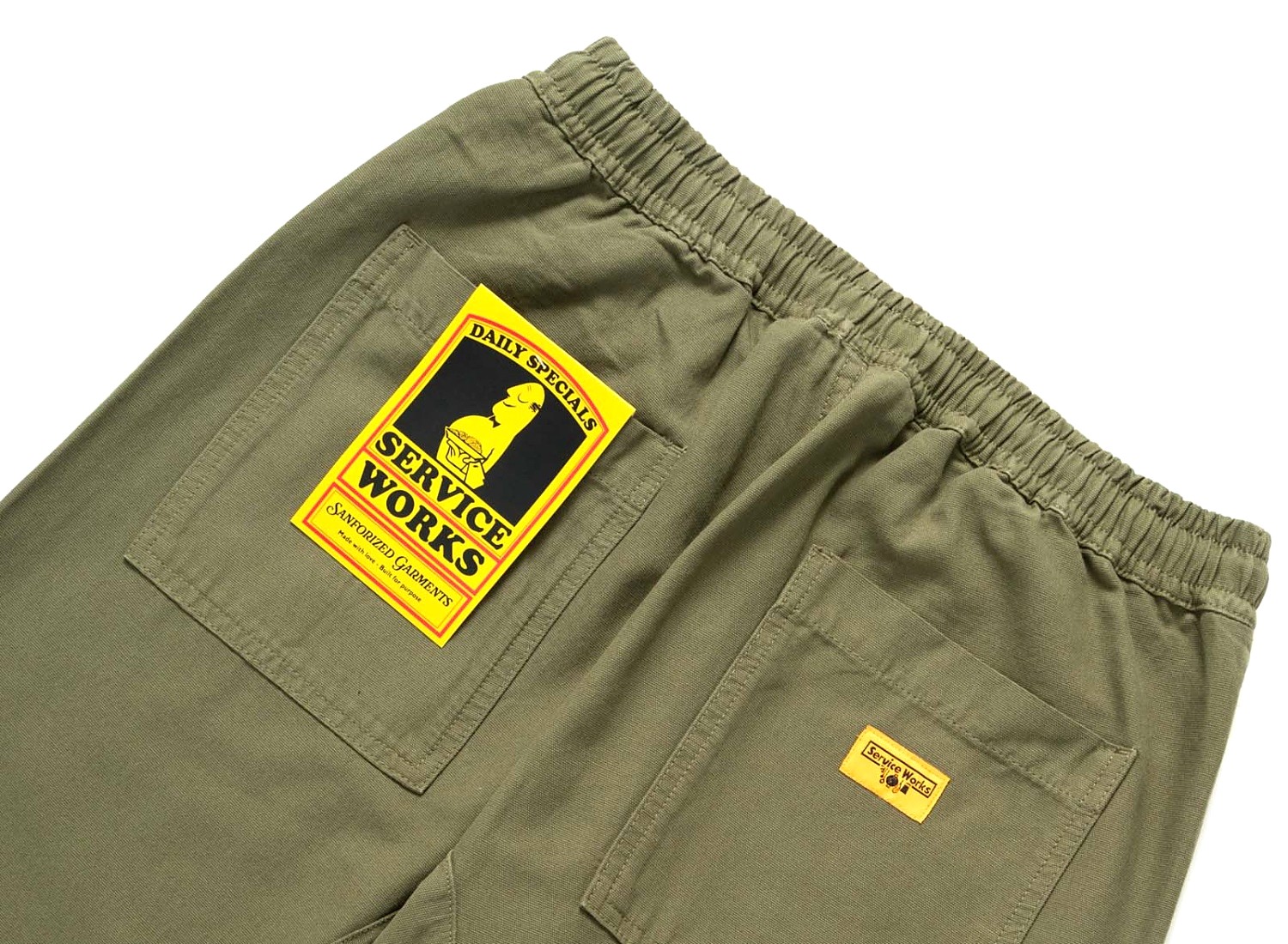 Front fatigue pockets and back pockets with woven Service Works label.