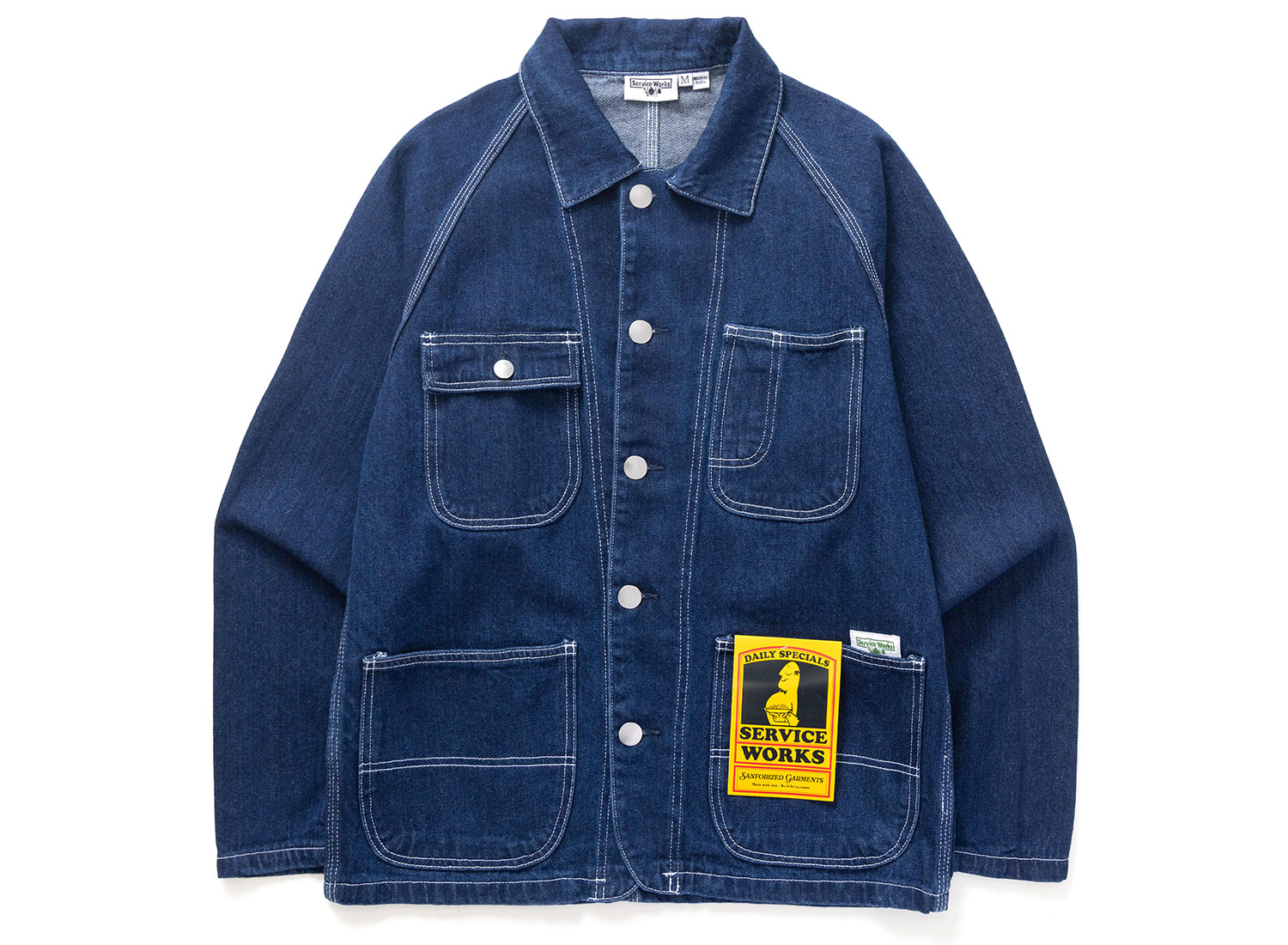 Service Works Denim Coverall 2.0 One Wash. 12 oz. denim overshirt. Regular fit. Triple stitching, contrast stitching. Raglan sleeves. 4 front pockets. 5-button closure. Woven label.