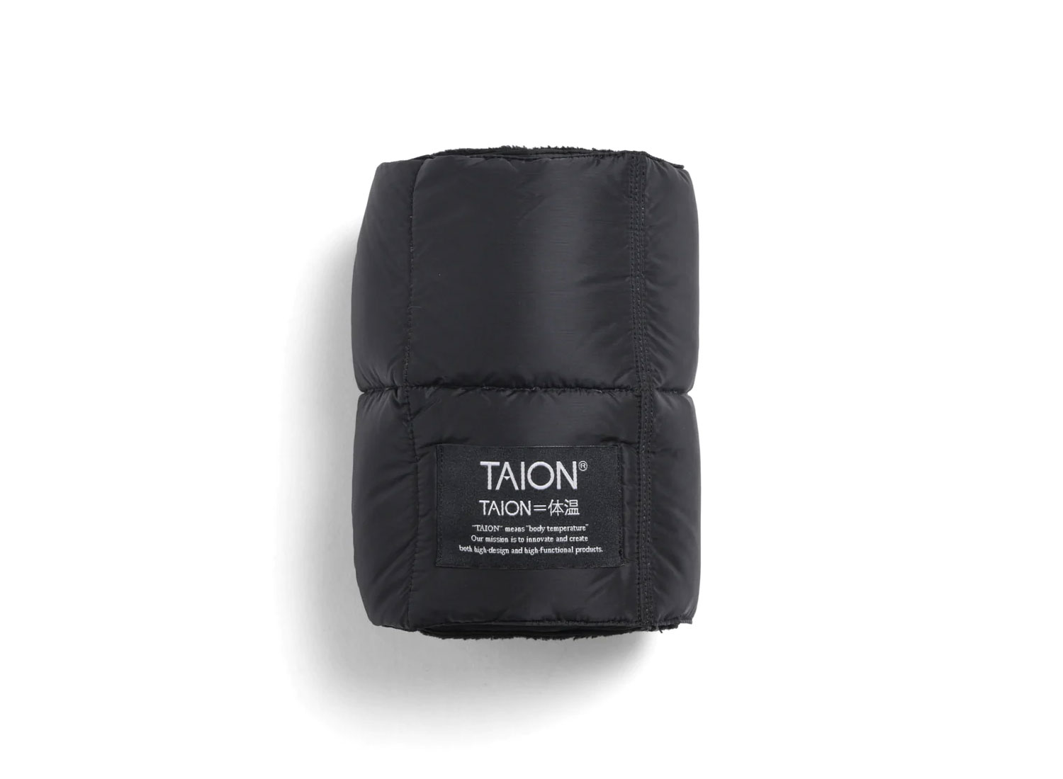TAION Basic Down Scarf Black. Quilted scarf. Lightweight quilted down scarf, warm and practical for winter or travel. Water-repellent 400T nylon taffeta shell, backed with soft fleece lining. Filled with 95% down / 5% feathers, with 800 fill power. Subtle reflective Taion logo. Size 16x86cm.