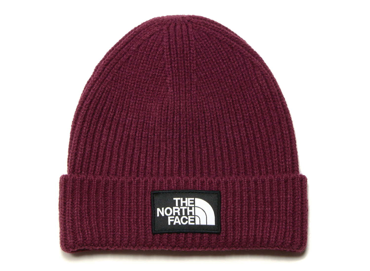 THE NORTH FACE Logo Box Cuff Beanie Boysenberry. Folded beanie made from acrylic ribbed knit. Front logo.