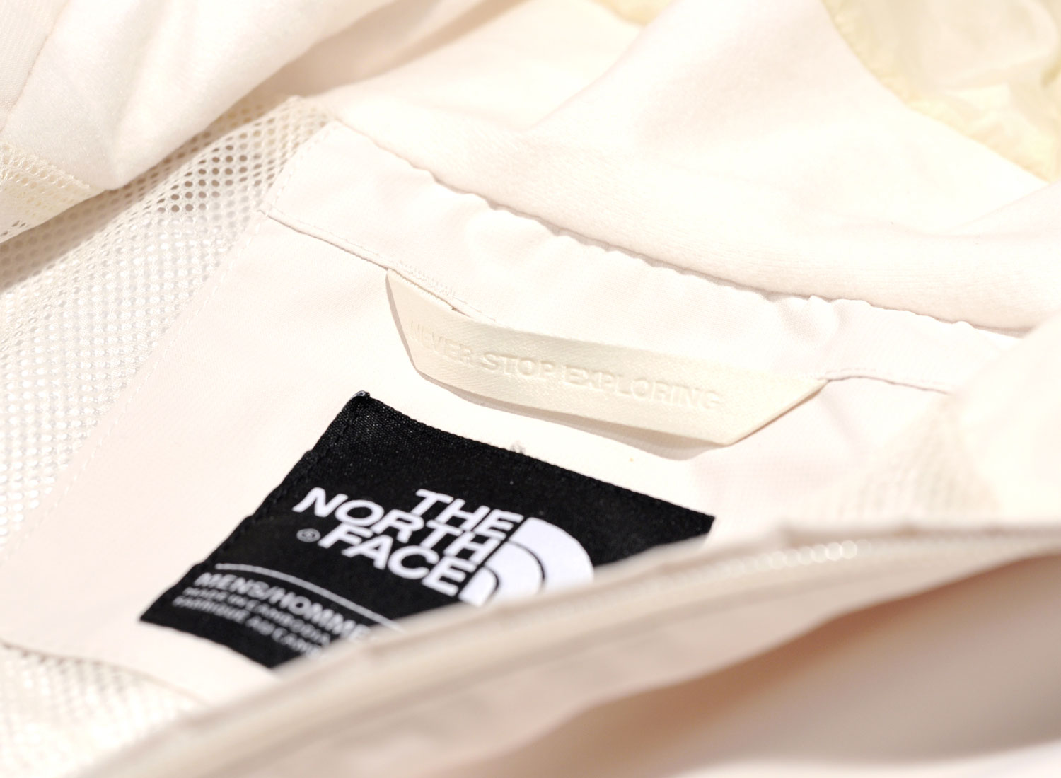 THE NORTH FACE Mountain Q Jacket Vintage White. Regular fit hooded windbreaker made from repelent ripstop fabric. 100% polyester. Mesh lining. Drawcor on hood and hem. Zipped pockets on the sides. Elastic cuffs. Black patch on the sleeve.