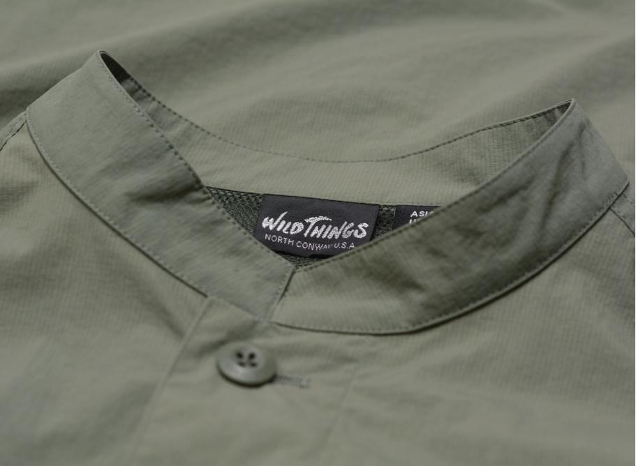WILD THINGS Backstain Field Shirt OD. Military inspired regular fit S/S Shirt made from nylon fabric. Round collar. Buttoned flap pockets on chest. Buttoned closure. Rounded hem.