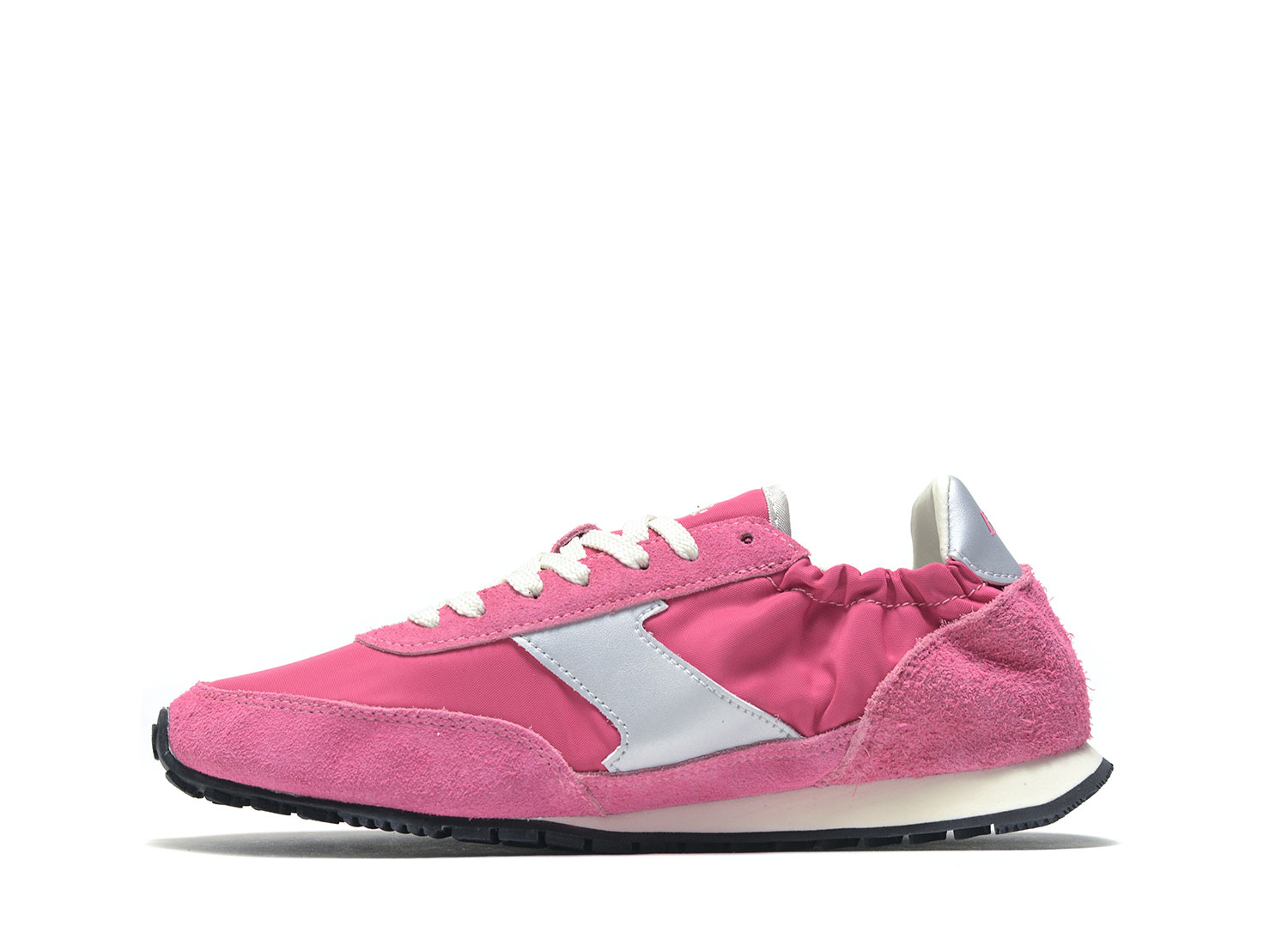Sneaker confectionnée en nylon rehaussée de renforts en suède pour une esthétique vintage. Bords élastiqués pour un ajustement parfait. Semelle en gomme pour renforcer le look retro.