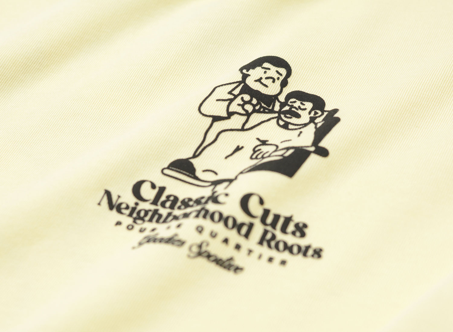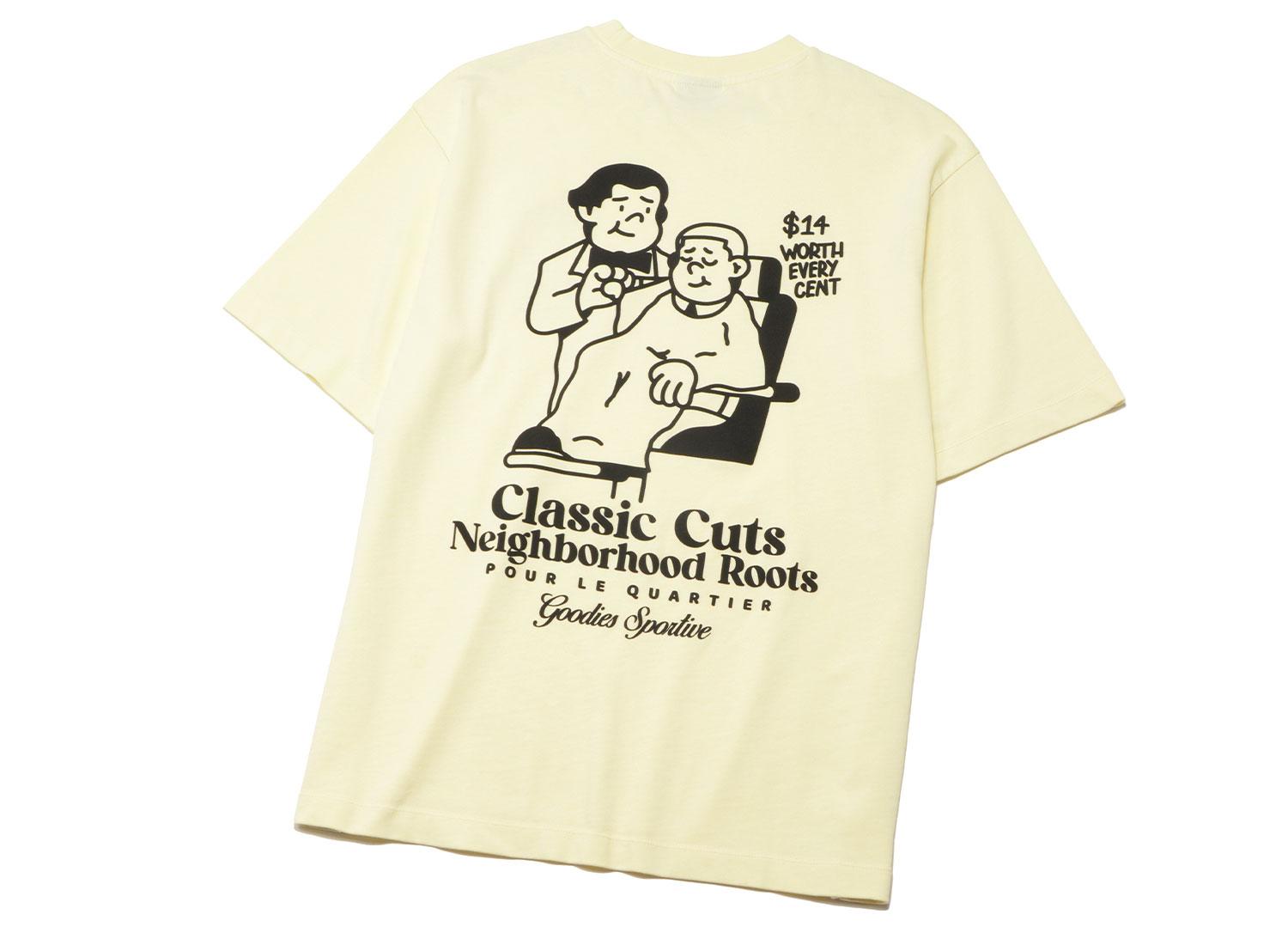 GOODIES SPORTIVE Classic Cuts Tee Butter. T-shirt col rond confectionné en jersey 100% coton. Coupe oversize. Bord-côte au col. Impression sur l'avant et l'arriere. Coupe oversize. Prévoir une taille en moins si vous souhaitez un fit regular.