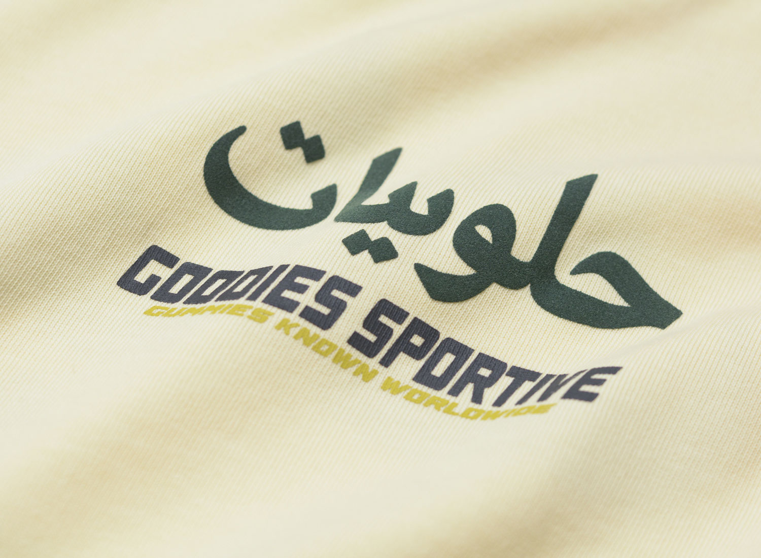 GOODIES SPORTIVE Gummies Known Tee. T-shirt col rond confectionné en jersey 100% coton. Coupe oversize. Bord-côte au col. Impression sur l'avant et l’arrière. Prévoir une taille en moins si vous souhaitez un fit regular.
