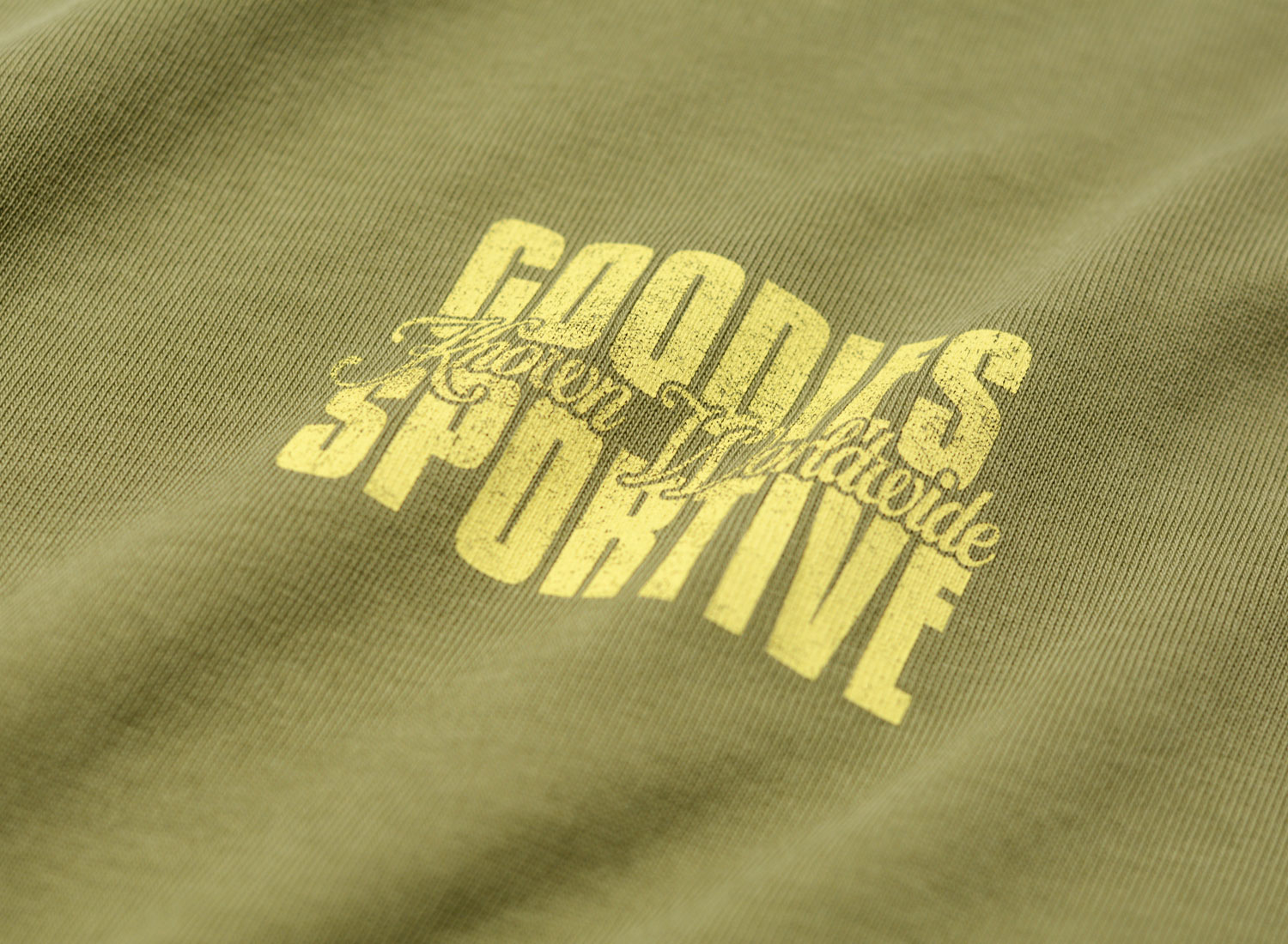 GOODIES SPORTIVE Radio Khaki Tee. T-shirt col rond confectionné en jersey 100% coton. Coupe oversize. Bord-côte au col. Impression sur l'avant et l’arrière. Prévoir une taille en moins si vous souhaitez un fit regular.