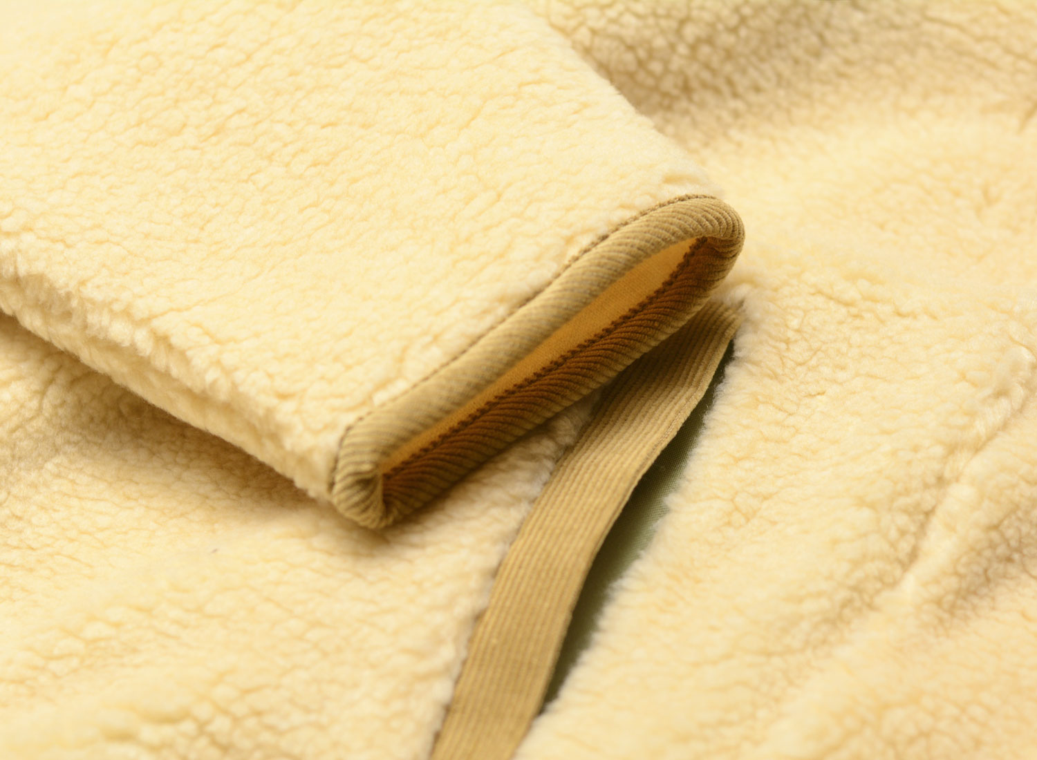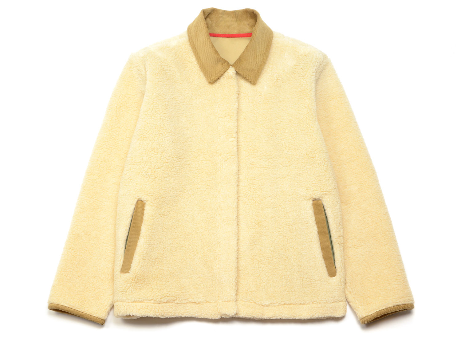 HOMECORE Kevin Jacket Cream. Veste réversible en polyester, offrant deux styles : une face texturée et une autre plus épurée. Coupe regular. Doublure upcyclée. Fermeture à boutons-pression. Finitions en velours au col et aux poignets. Poches passepoilées. Fabriquée au Portugal.