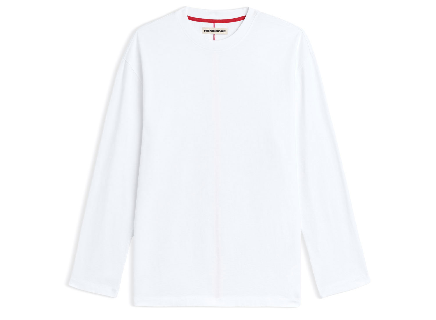 T-shirt manches longues coupe un peu ample confectionné dans un jersey de coton épais. 100% coton biologique. Bord-côte au col. Surpiqure rouge et petite impression ton sur ton dans le dos.