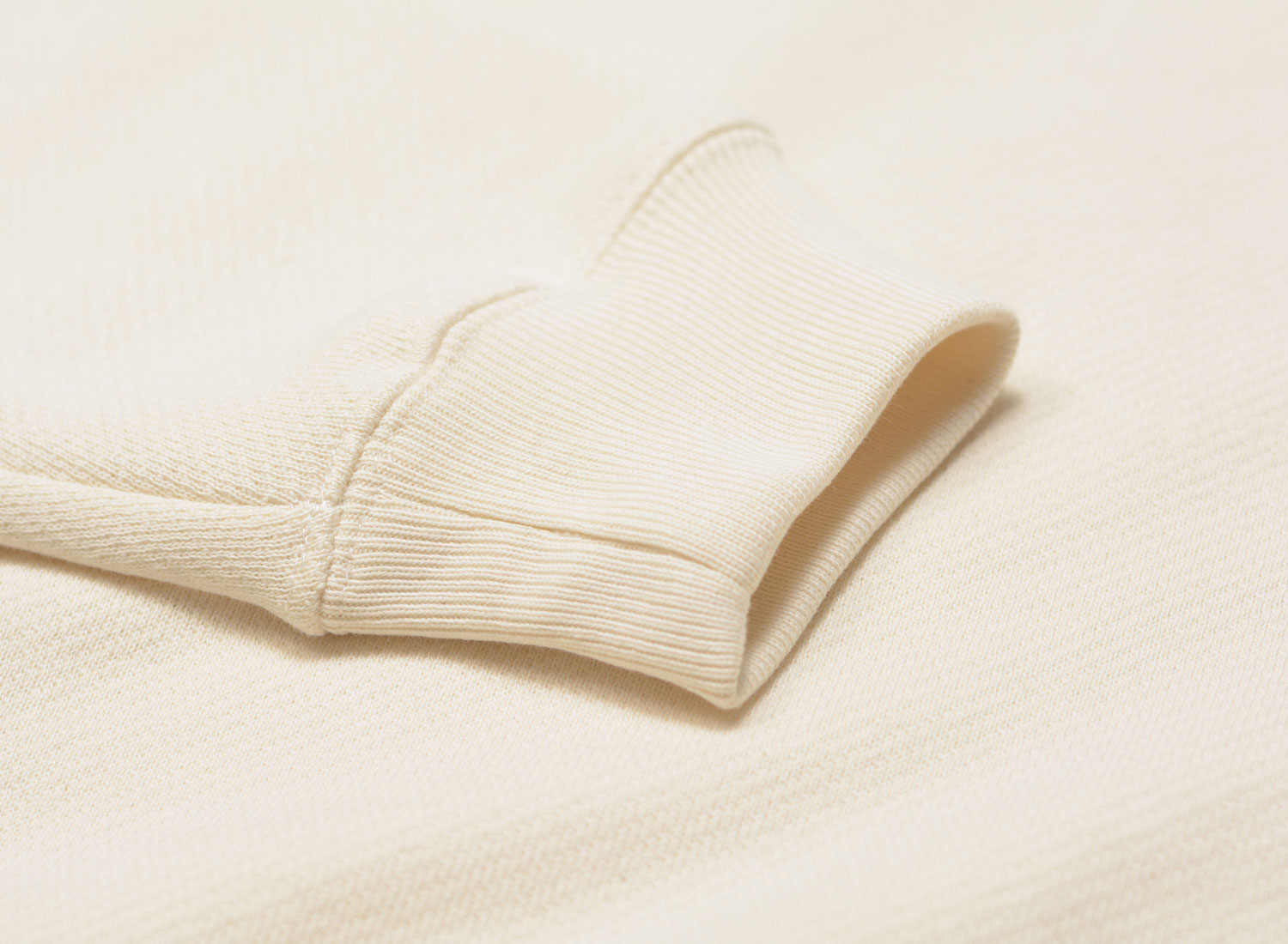Bords-côtes au col, aux poignets et sur le bas.