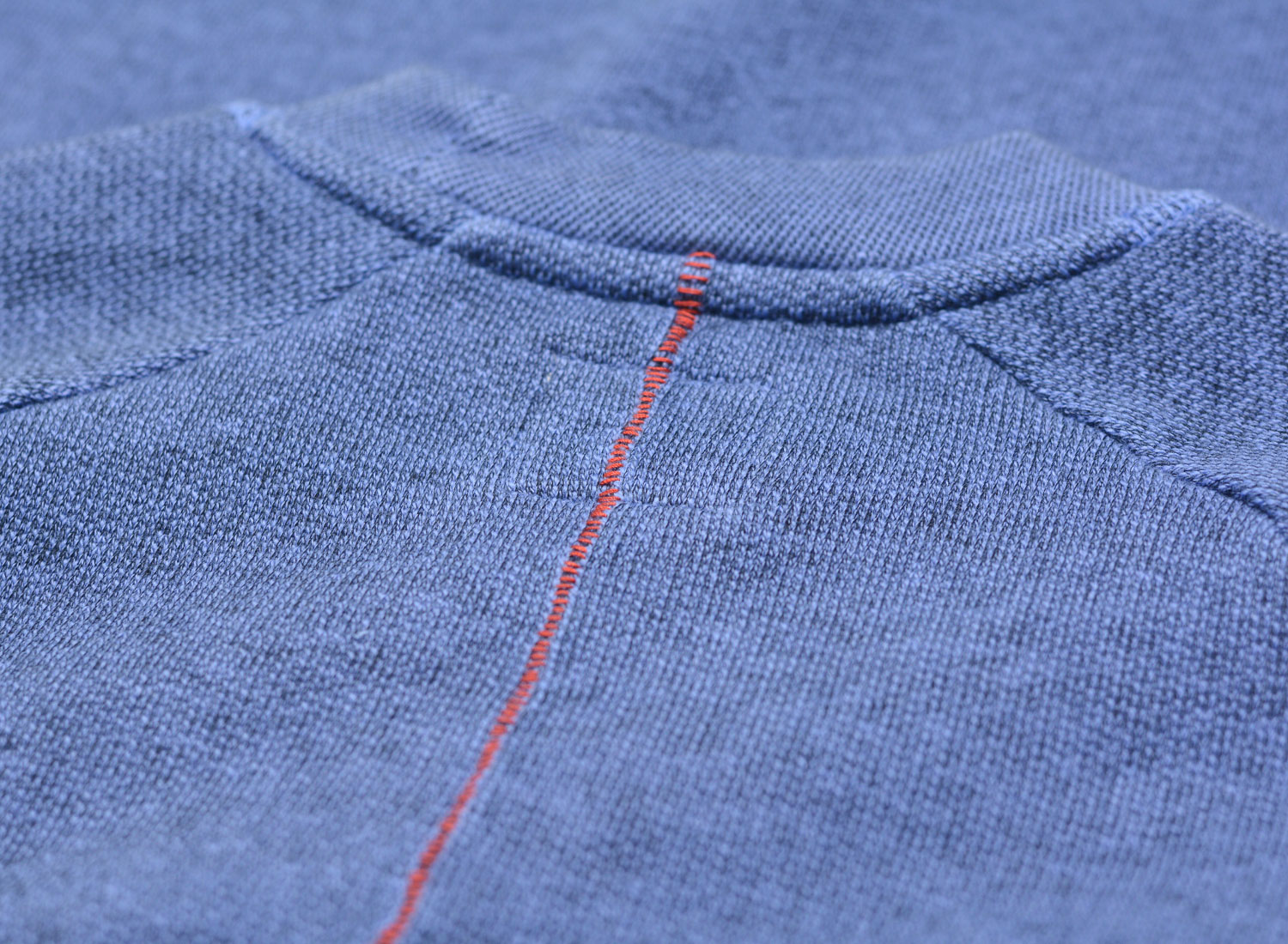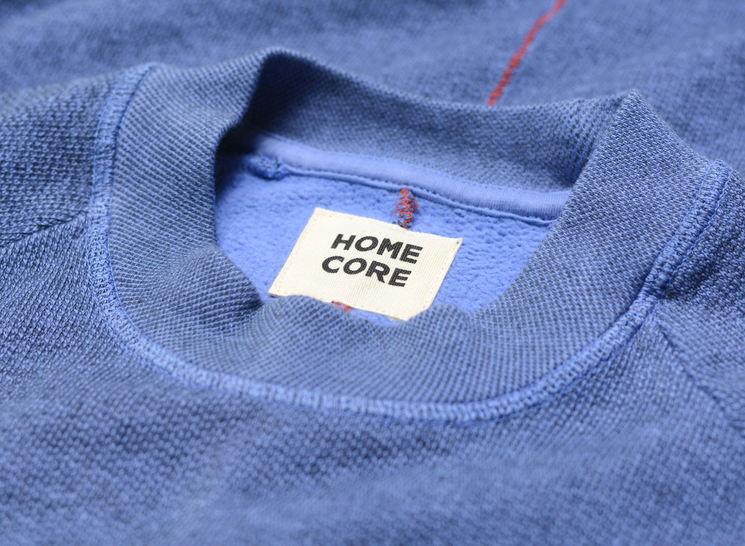 HOMECORE Terry Sweat Bleuet. Sweatshirt col rond confectionné en molleton de coton très doux. Coupe droite. Bords-côtes au col, aux poignets et sur le bas. Surpiqure rouge dans le dos.