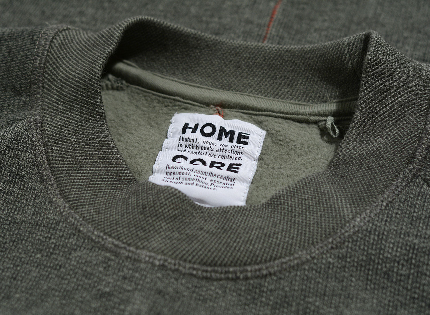 HOMECORE Terry Sweat Dark Cloud. Sweatshirt col rond confectionné en molleton de coton très doux. Coupe droite. Bords-côtes au col, aux poignets et sur le bas. Surpiqure rouge dans le dos.