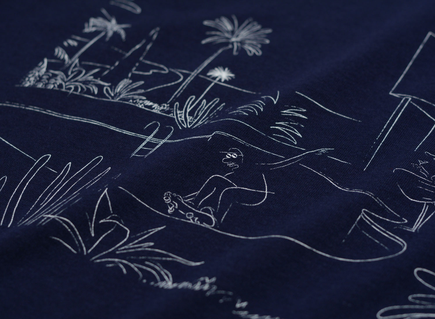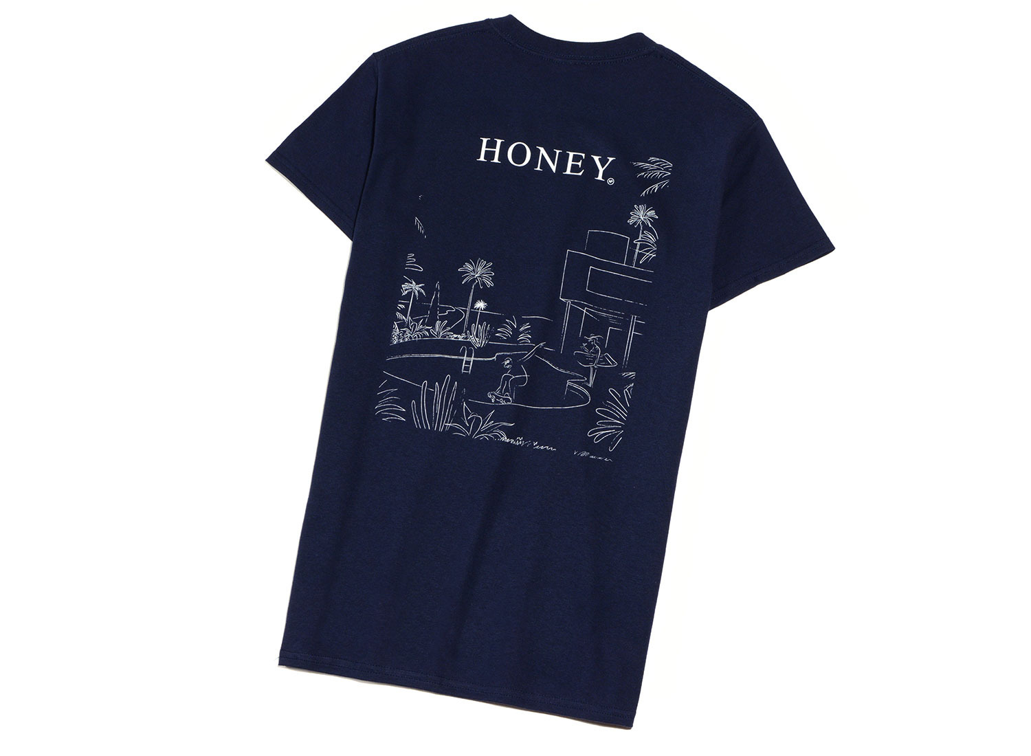 HONEY Pool Tee Navy. T-shirt faisant partie de la collection capsule de notre skateshop HONEY. Jersey 100% coton. Coupe regular. Col rond. Impression à l'encre bio sur la poitrine et au dos. Artwork par notre VINCENT MAUNIER officiel. Quantités limitées. Imprimé dans le sud de la France !
