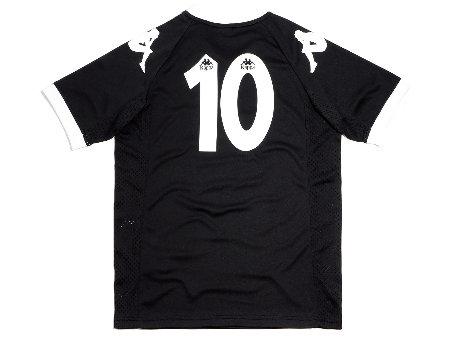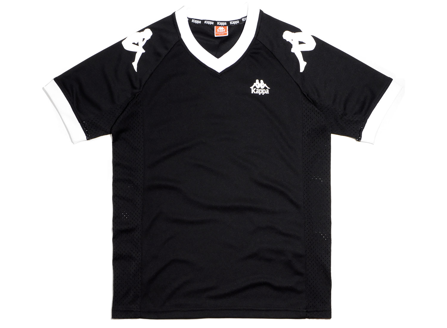 KAPPA Ramzy Authentic Tee Black / White. Maillot d'inspiration Football en Jersey de Polyester. Coupe droite. Col V. Impression sur la poitrine, sur les manches et au dos. Empiècements en mesh sur les côtés.