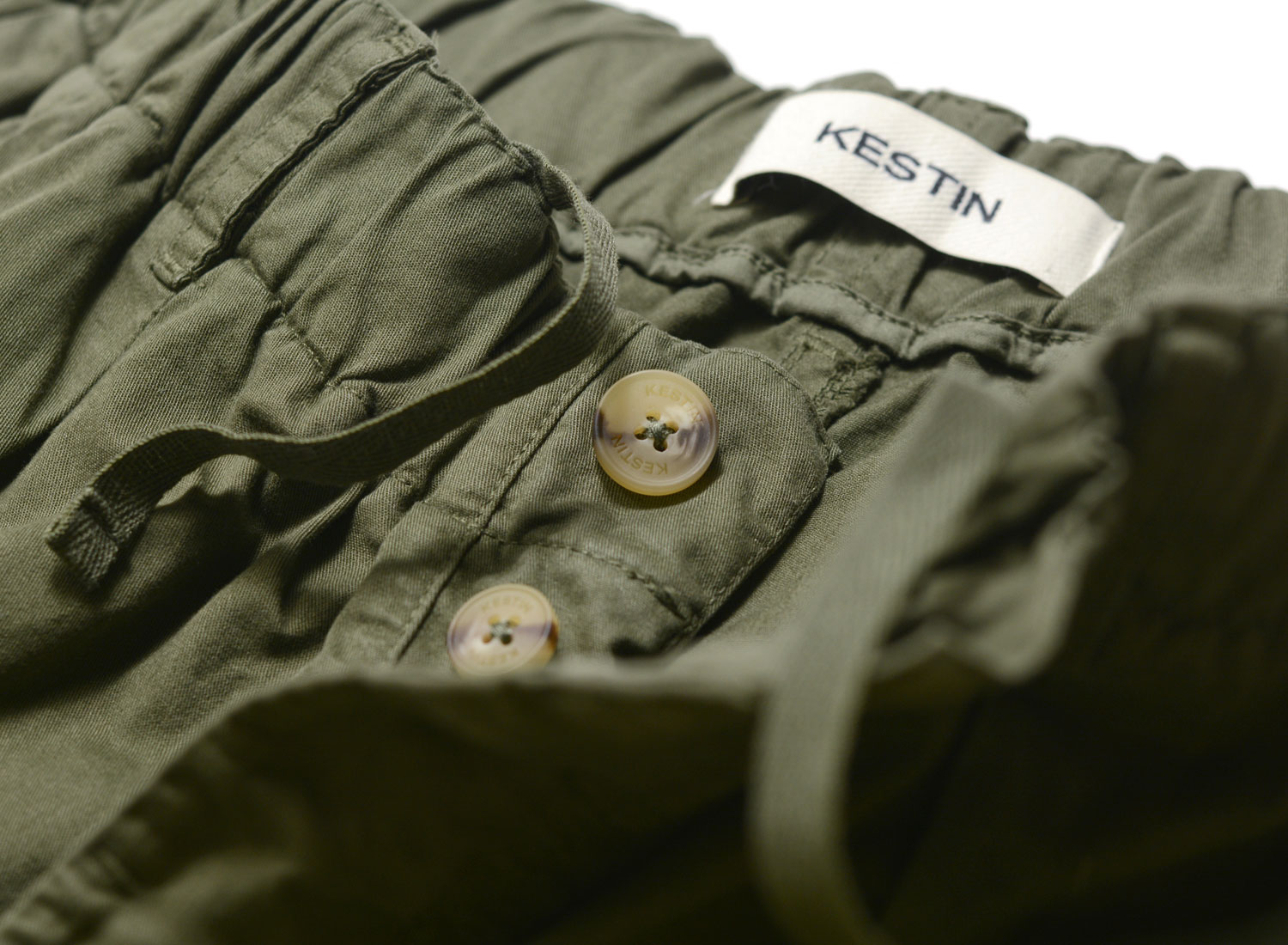 Confectionné en sergé de coton léger de couleur kaki, il offre une sensation de légèreté idéale pour les journées plus chaudes.