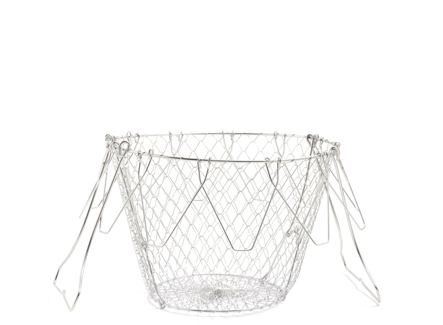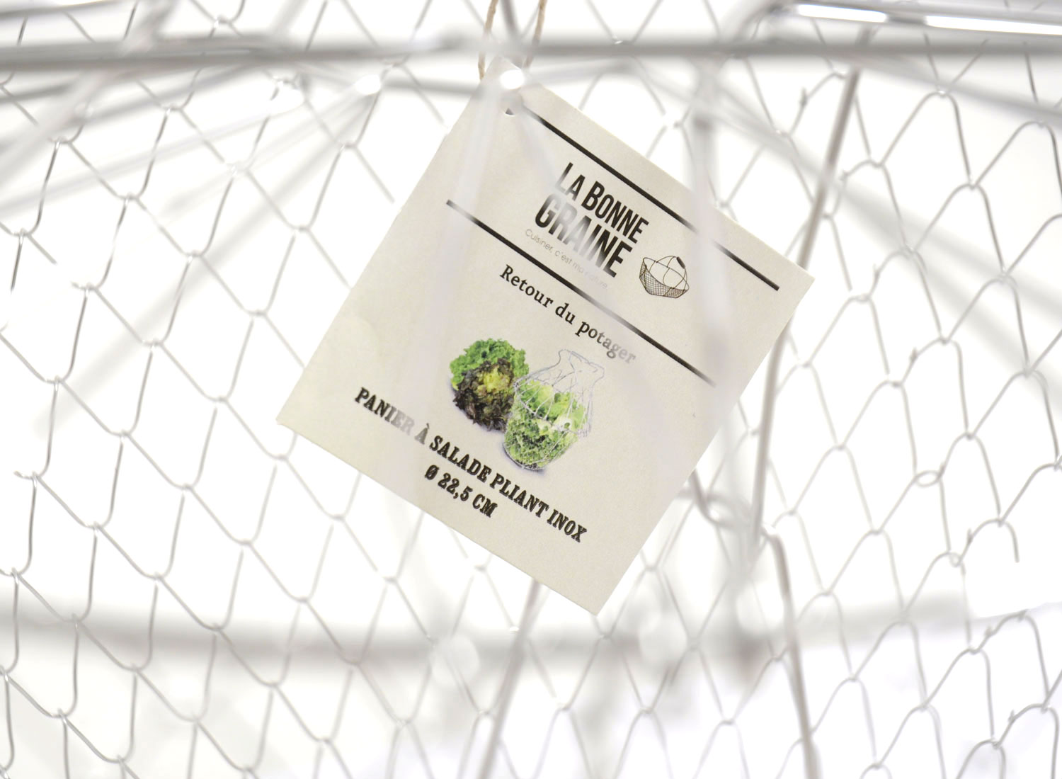 Panier à salade pliant par LA BONNE GRAINE. Acier Inoydable. Fabriqué en France par La Maison Combrichon (spécialiste du fil métallique inox). Diamètre 22,5cm.