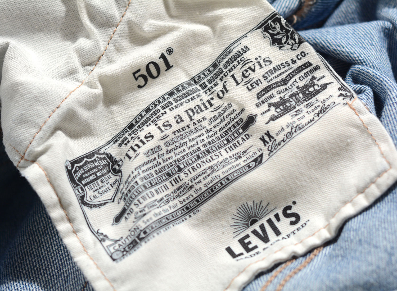 LEVI'S® MADE & CRAFTED® 1980s 501® Jeans Inlet A22310002. Très beau 501® 80s confectionné en denim délavé white selvedge. 100% coton bio. Coupe droite. Taille normale. Boutons et rivets frappés. Patch cuir.