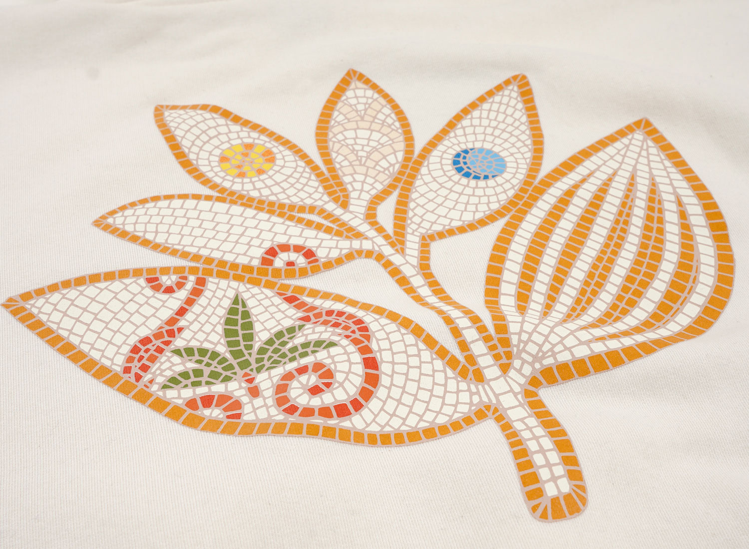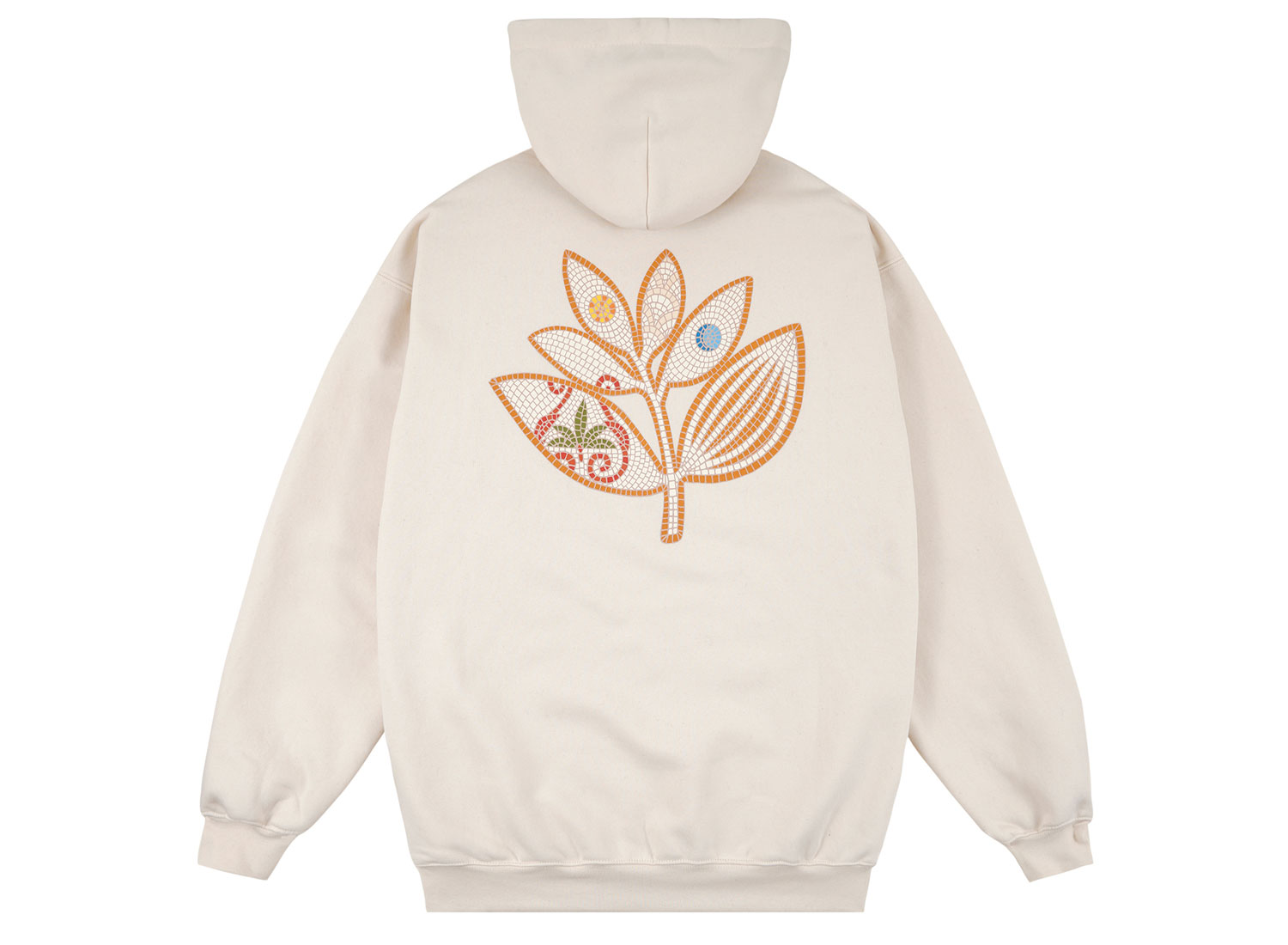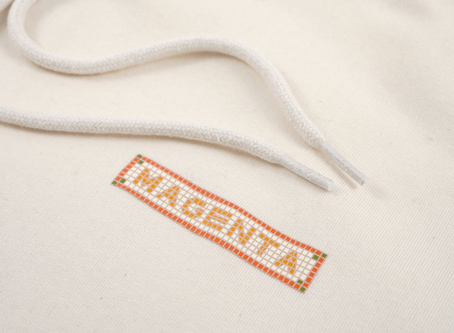 MAGENTA Mosaic Hoodie Natural. Sweatshirt à capuche confectionné en molleton épais et confortable 90% coton / 10% polyester. Coupe ample. Bords-côtes aux poignets et sur le bas. Poche kangourou. Impression sur la poitrine et à l'arrière.