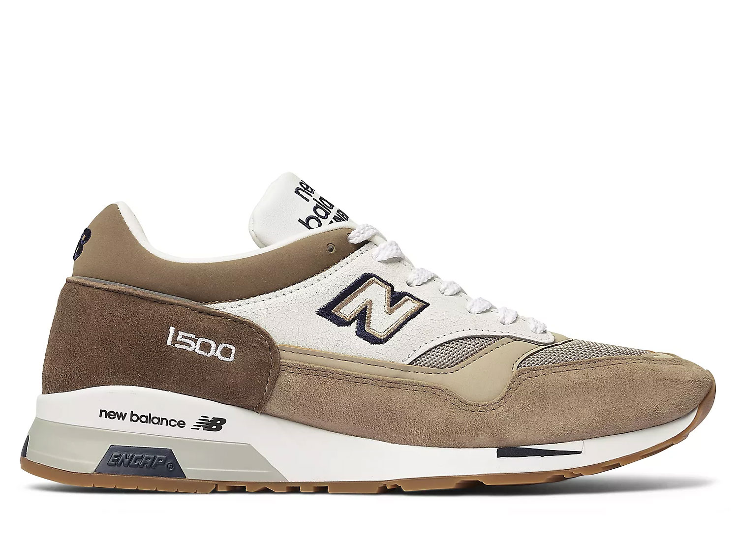 NEW BALANCE M1500SDS Sand / White. Tres belle édition de la New Balance M1500 dans un colorway mêlant différent tons de beige et marron. Empeigne en daim, mesh et cuir craquelé. Semelle ENCAP. Fabriquée en Angleterre. Quantités limitées.
