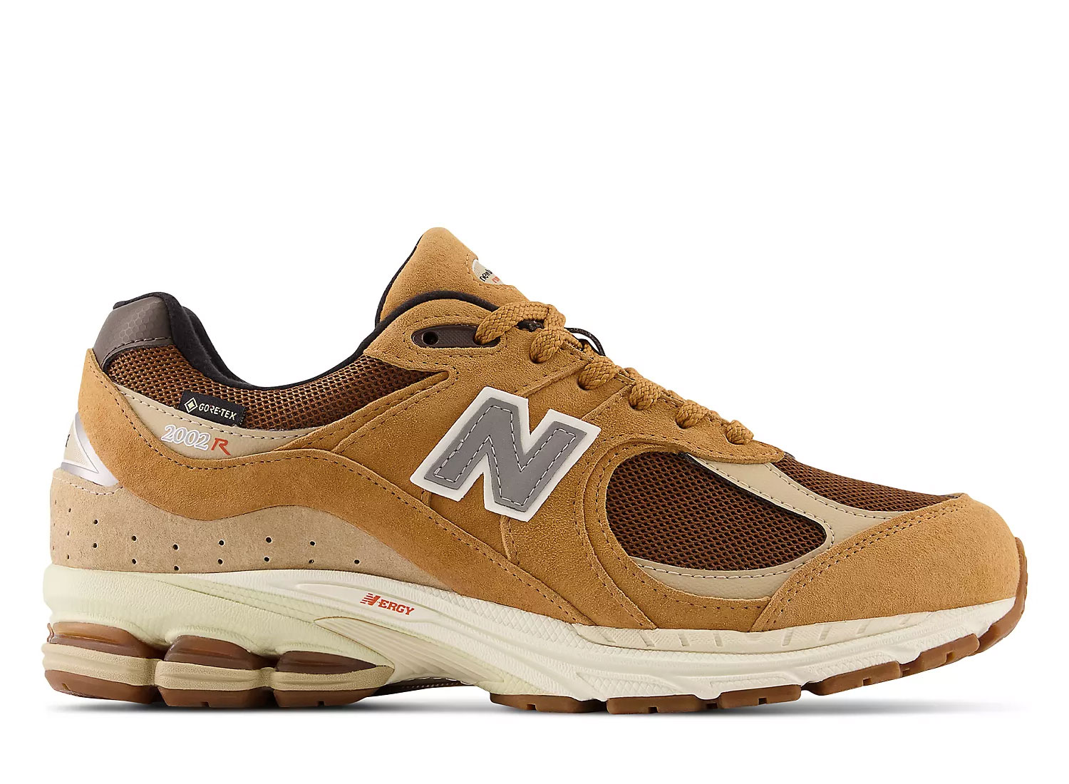 NEW BALANCE M2002RXG. Empeigne en suede et mesh. Membrane GORE-TEX® impérméable. Semelle ABZORB amorti N ERGY. Semelle crème pour un look retro.