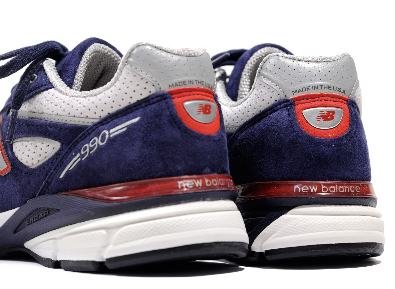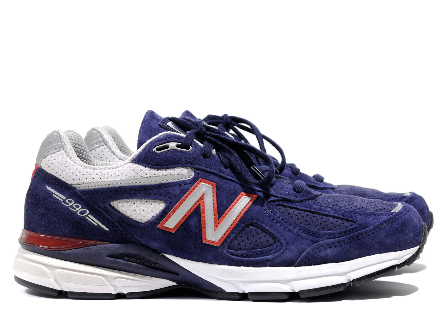 NEW BALANCE M990BR4 Pigment / Red. Magnifique M990 V4 en Suede premium. Doublure mesh. Semelle ENCAP. Détails réfléchissants. Quantités limitées. Fabriquée aux USA.