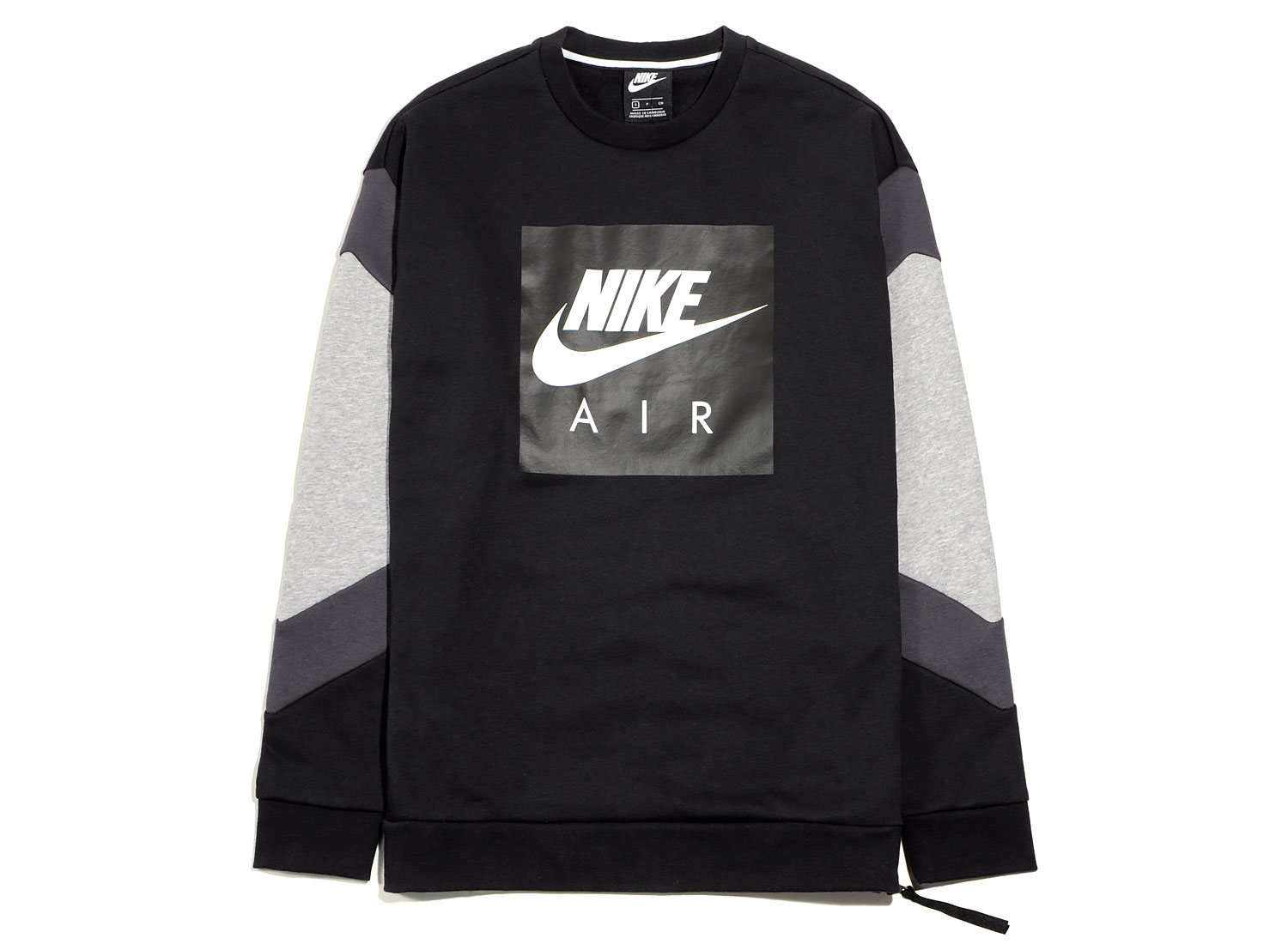 NIKE SPORTSWEAR Air Crewneck Fleece Black / Anthracite 928635-010. Sweatshirt col rond confectionné en molleton très doux. 80% coton / 20 polyester. Détails graphiques sur les manches. Coupe droite. Impression sur l'avant. Zip sur le côté. Bords-côtes au col, aux poignets et sur le bas.