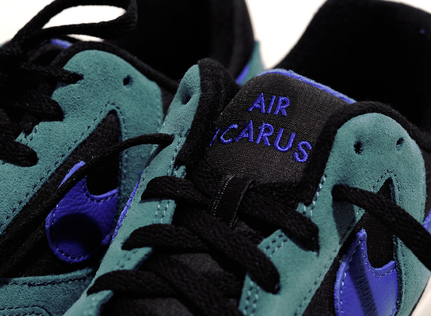 NIKE Air Icarus Extra QS Iced Jade / Racer Blue 882019-300. Très belle réédition de la Air Icarus. Mélange de nylon ripstop, cuir et suede. Distribution limitée et sélective Quickstrike.