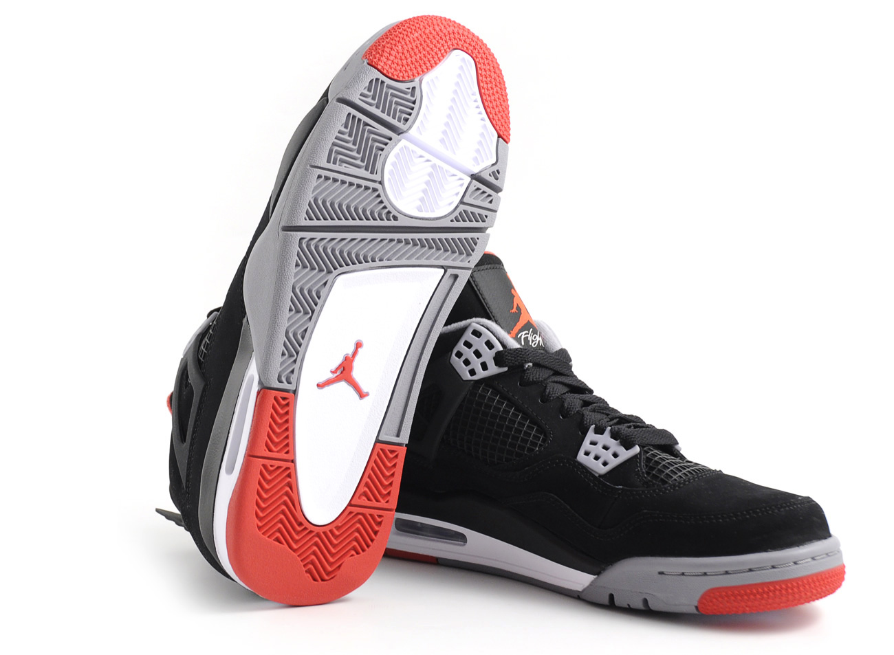 NIKE AIR JORDAN 4 RETRO BLACK / CEMENT GREY / FIRE RED4538Nike Air Jordan 4 Retro Black / Cement Grey / Fire Red