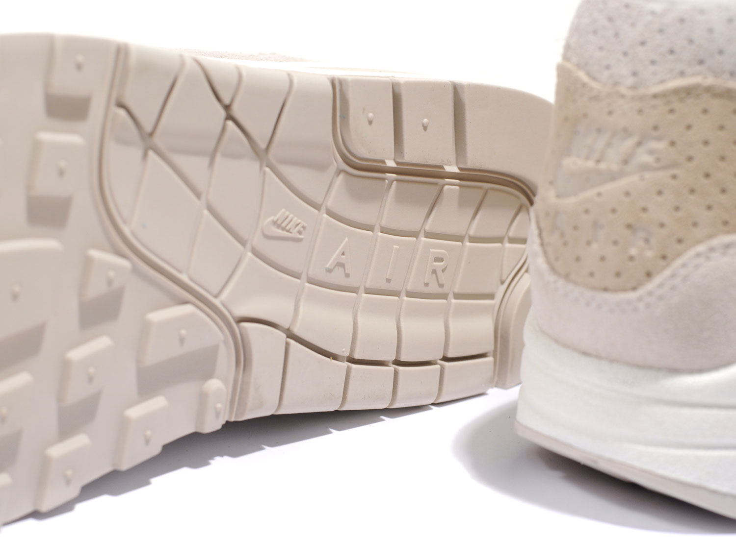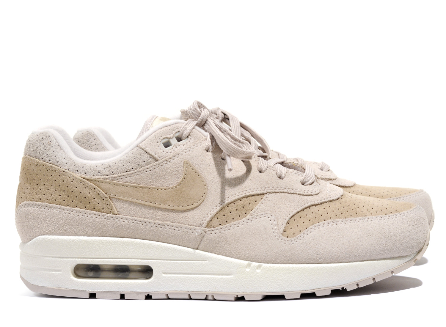 NIKE Air Max 1 Premium Desert Sand. Très belle Air Max 1 en traitement Premium. Détails de suédé perforé. Quantités limitées.