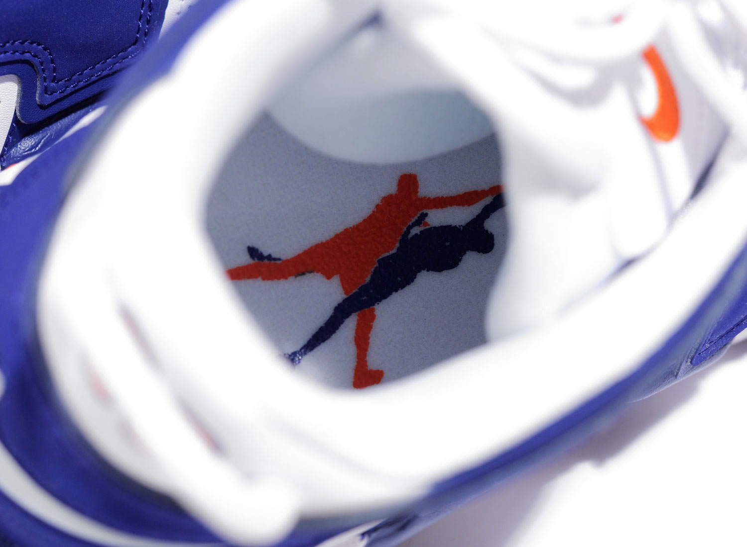 CONVERSE Air More Uptempo White / Deep Royal Blue. Très belle édition de la Air More Uptempo "The Dunk" faisant référence au DUNK monstrueux de Scottie Pipen face à Patrick Ewing en 1994. La paire reprend les coloris des Knicks arborant le numéro 33 au talon, qui est celui que portaient Pipen et Ewing. Graphisme du Dunk sur la semelle intérieure. Quantités limitées.
