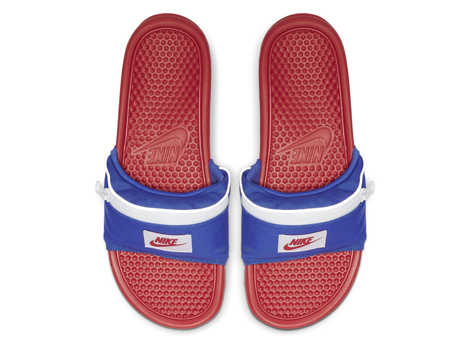 NIKE Benassi JDI Fanny Pack Bright Crimson AO1037-601. Claquettes très fun pour l'été. Partie supérieure en nylon avec poche zippée.