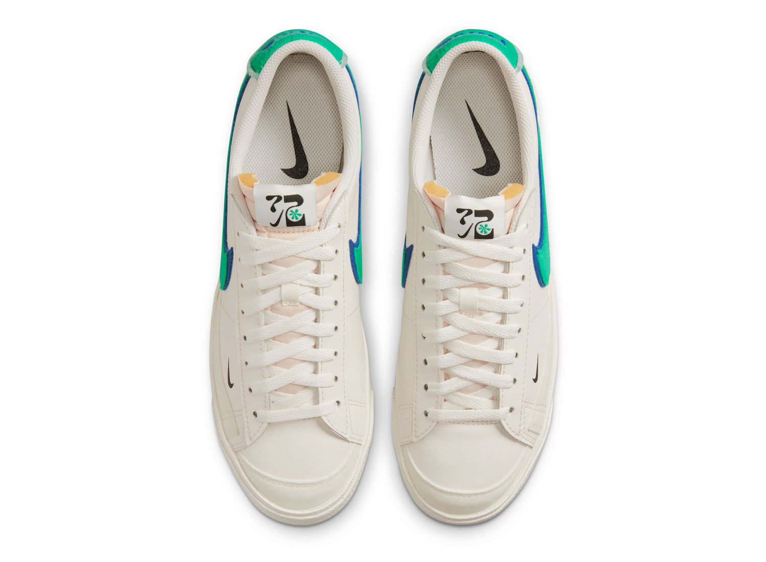 NIKE Blazer Low 77 Double Swoosh Phantom / Stadium Green DO9777-001. Empeigne en cuir. Double swoosh contrasté. Look vintage.