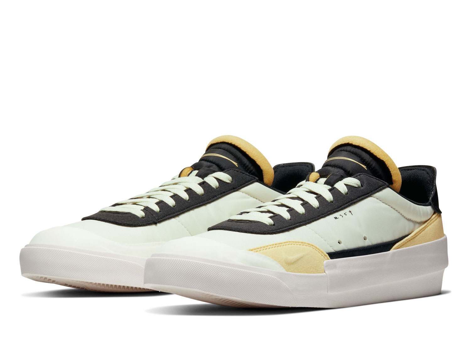 NIKE Drop-Type Sail / Black AV6697-101. Très belle Drop Type faisant partie de la collection très innovante N.354 qui puise son inspiration dans les archives de prototypes Nike. Mix entre une blazer low et une tennis court. Empeigne en nylon et cuir. Talon cuir. Languette mousse découpée donnant à la paire un look vintage. Quantités limitées.