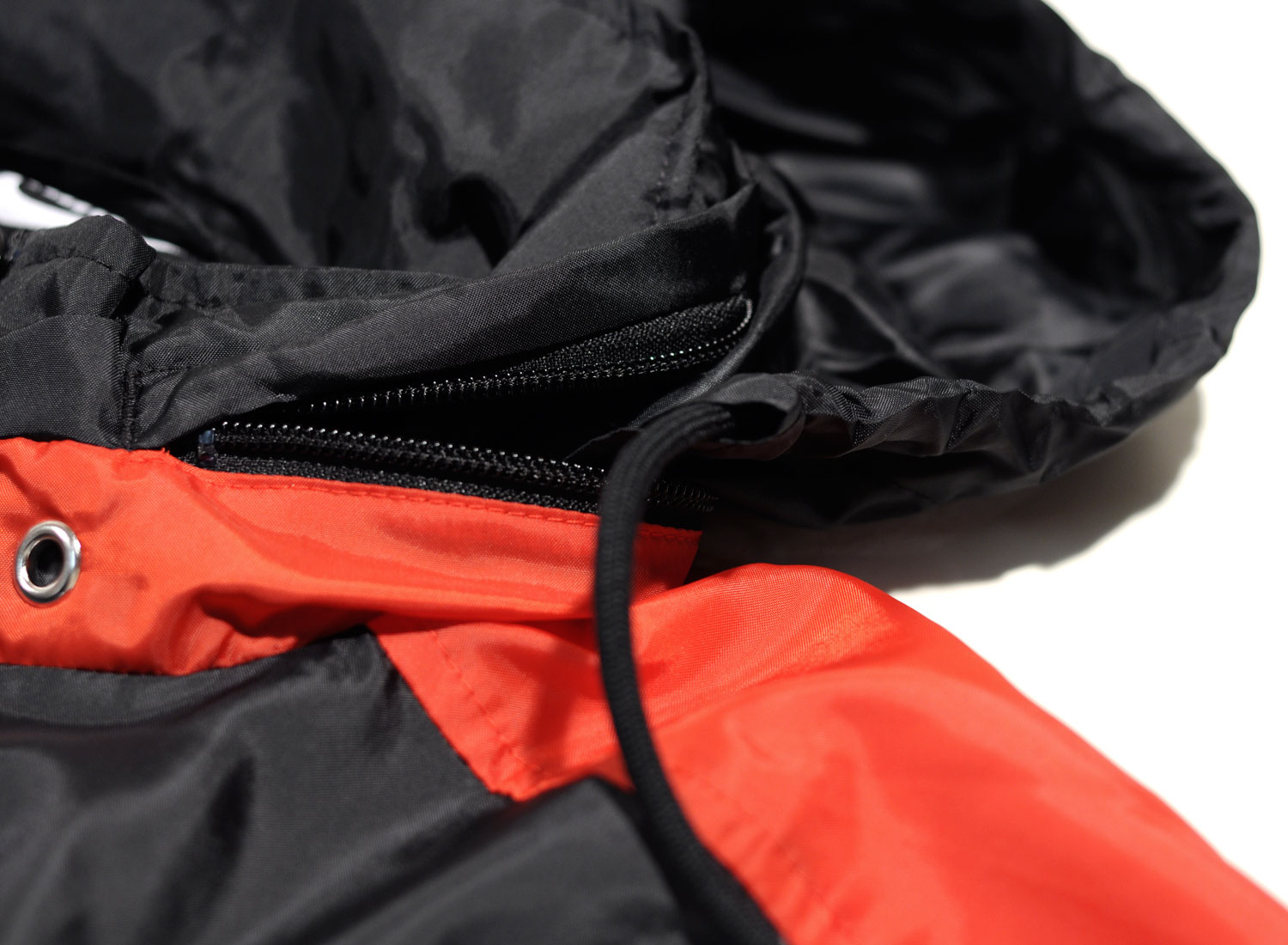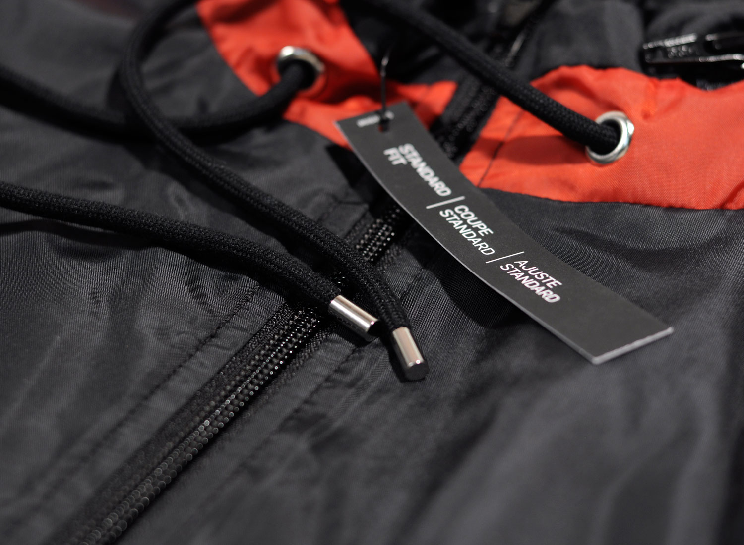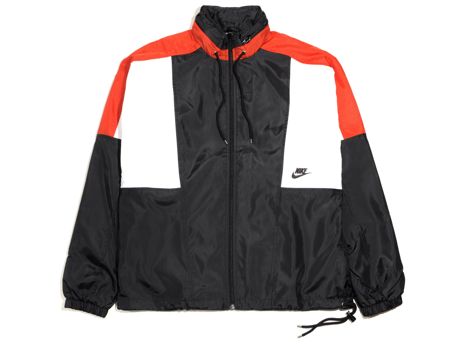 NIKE Re-Issue Jacket Woven Black / University Red AQ1890-010. Réédition à l'identique d'un modèle de veste historique de 1989 sorti tout droit des archives de NIKE. Tissu très léger 100% polyester. Coupe droite. Doublure filet. Poches zippées. Cordons de serrage sur la capuche et sur le bas. Poignets élastiques.