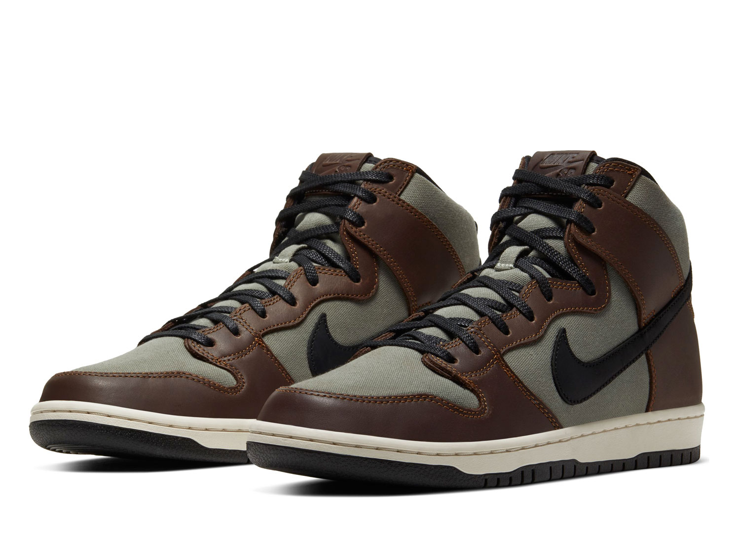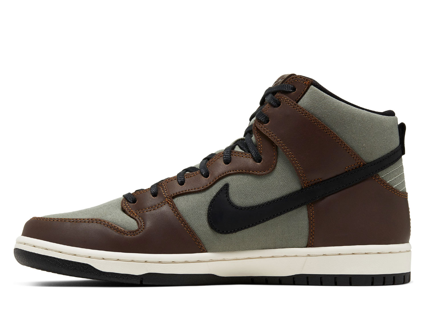 NIKE SB Dunk High Pro Baroque Brown / Black / Jade Horizon BQ6826-201. Dunk montante confectionnée en cuir premium et canevas. Système Zoom Air. Quantités limitées.
