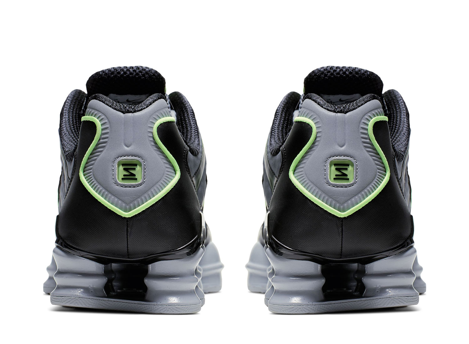 NIKE Shox TL Wolf Grey / Lime Blast AV3595-005. Réédition de la SHOX TL après 16 ans d'absence. Empeigne en mesh. Détails fluo. Semelle SHOX.