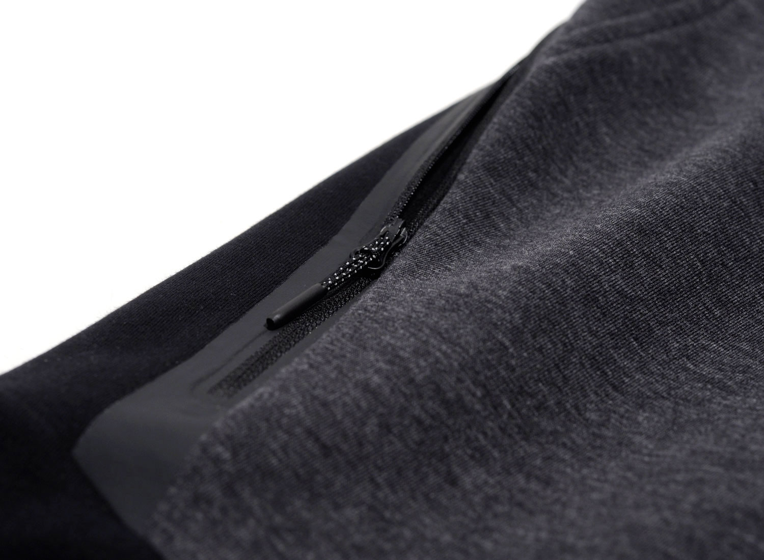 NIKE Tech Fleece Jogger Black Heather. Pantalon jogger bicolore en matière Tech Fleece. 66% Coton / 34% Polyester. Coupe slim. Grande poche zippée sur le côté droit. Cordon de serrage à la taille. Bords-côtes sur le bas. Logo "Nike" sur la cuisse.