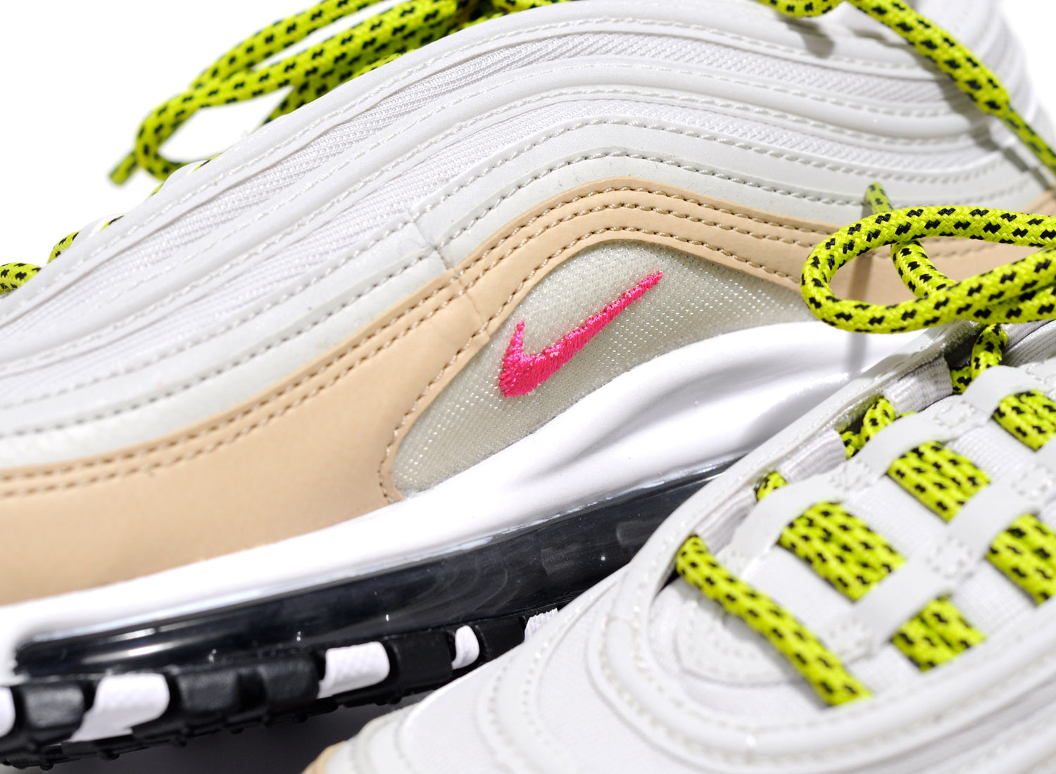 NIKE Wmns Air Max 97 Light Bone / Deadly Pink. Très belle Air Max 97 en version féminine. Joli mélange de matières et couleurs. Quantités limitées.