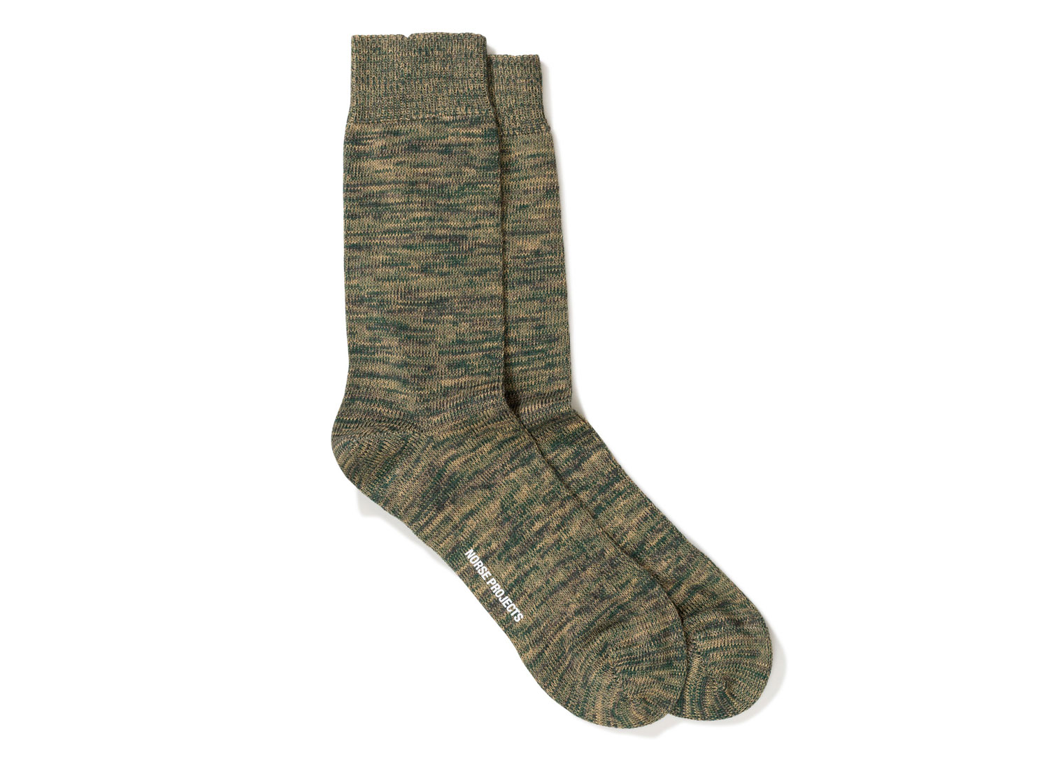 NORSE PROJECTS Bjarki Blend Quartz Green. Chaussettes chinées en maille 90% coton / 9% Polyamide / 1% Élasthanne. Taille Unique.