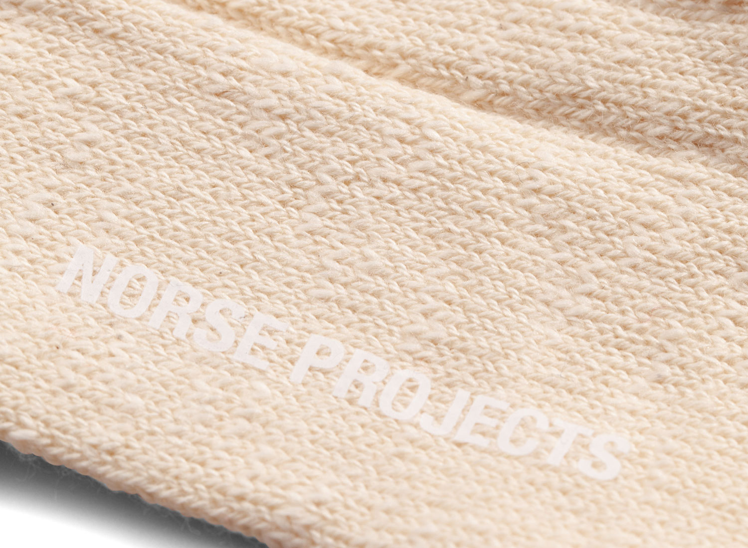 NORSE PROJECTS Bjarki Slub Stripe Cadmium Orange. Chaussettes jacquard en maille 90% coton / 9% Polyamide / 1% Élasthanne.