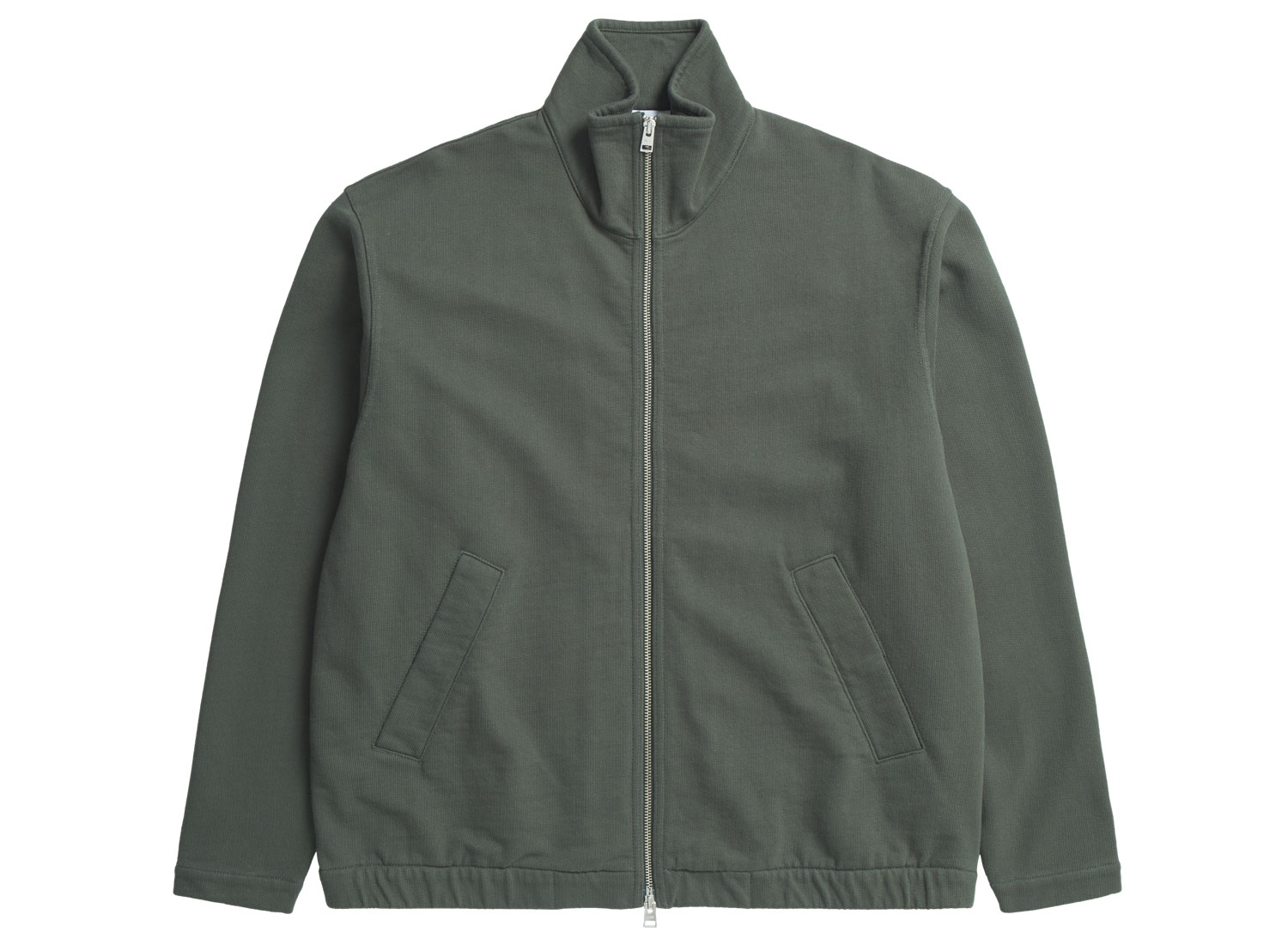 NORSE PROJECTS Bjorn Relaxed Organic Loopback Track Jacket Black Olive. Veste zippée coupe ample confectionnée dans molleton épais 100% coton. Double zip. Poches à pressions sur les côtés. Bas élastique.