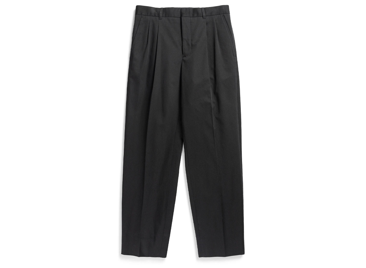 NORSE PROJECTS Christopher Gabardine Black. Pantalon élégant à pince coupe relax confectionné dans une gabardine de coton Italienne. Braguette zippée. Poches côtés à l'italienne. Poches à rabats boutonnés au dos.