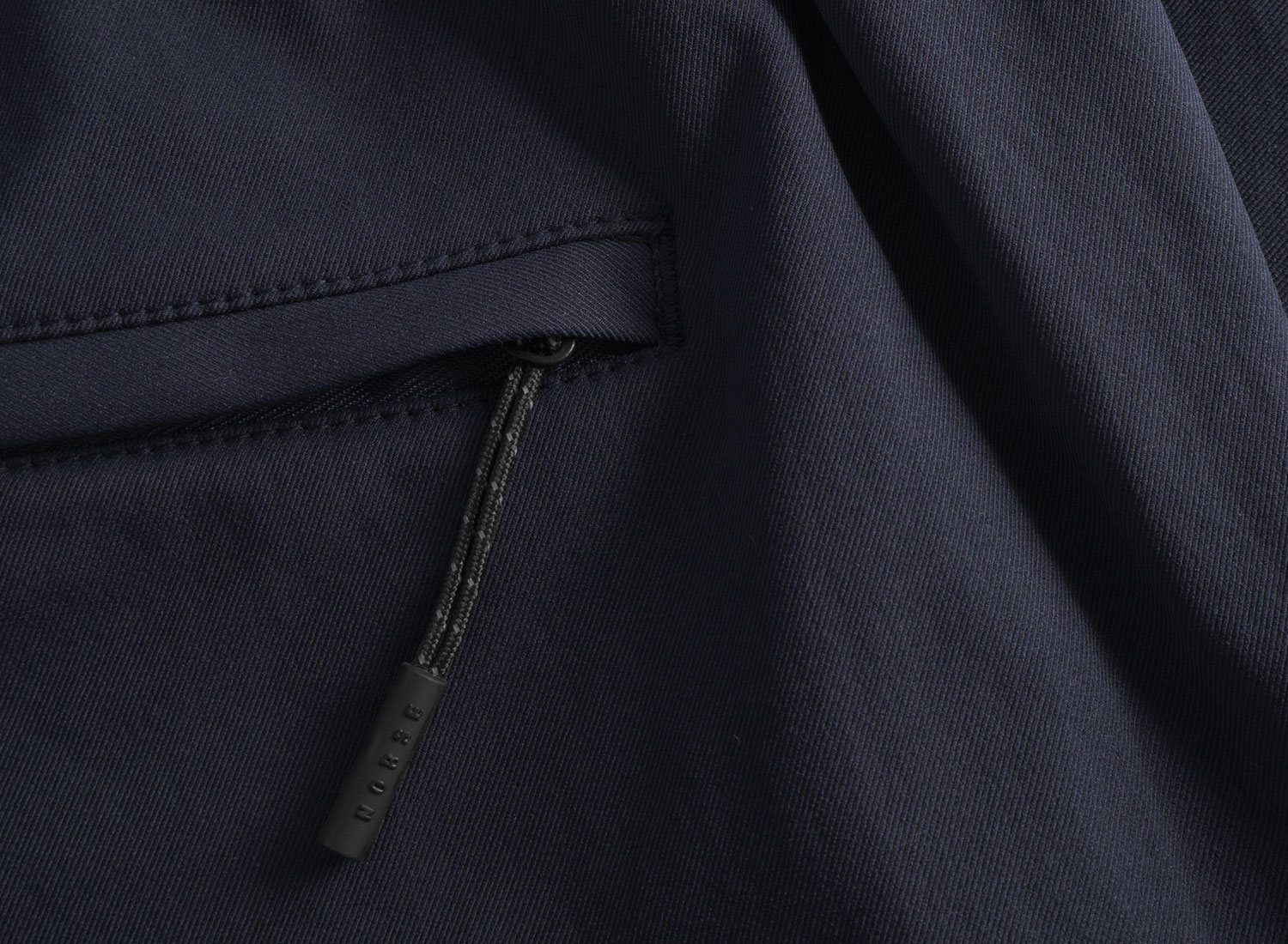 NORSE PROJECTS Ezra Fatigue Solotex Twill Trouser Dark Navy. Pantalon décontracté avec une jambe ample confectionné dans un twill stretch Solotex®. Tissu coupe vent, à séchage rapide double stretch. 100% polyester (Solotex®). Braguette zippée, fermeture à bouton et cordon de serrage à la taille. Poches fatigue à l'avant et une poche passepoilée zippée au dos.