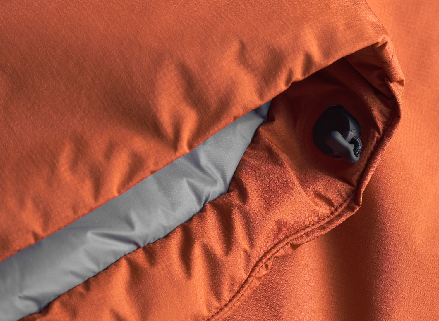Capuche réglable Cohæsive™ et ourlet ajustable ; poignets à fermetures “storm cuff”.