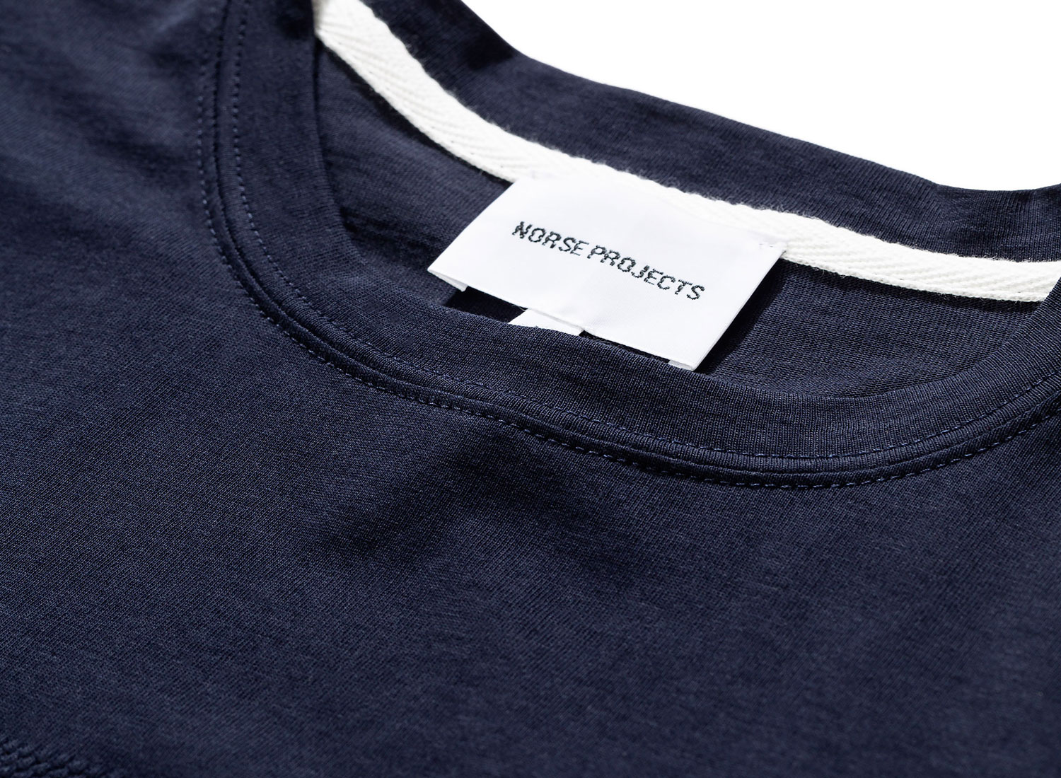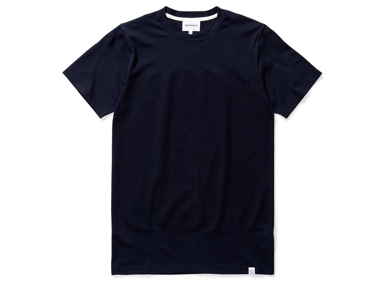NORSE PROJECTS Niels Bubble Dark Navy. T-shirt manches courtes 100% coton. Coupe regular. Détail de tissage en relief.