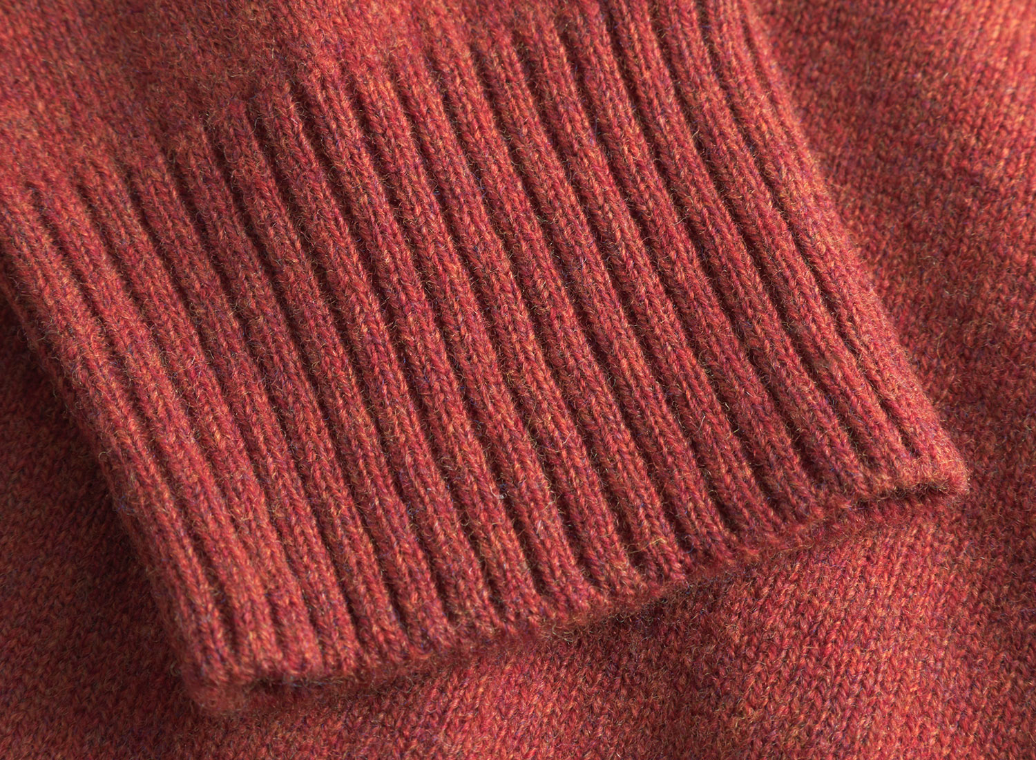 Manches montées, finitions côte 2x2 au col, aux poignets et à l’ourlet.